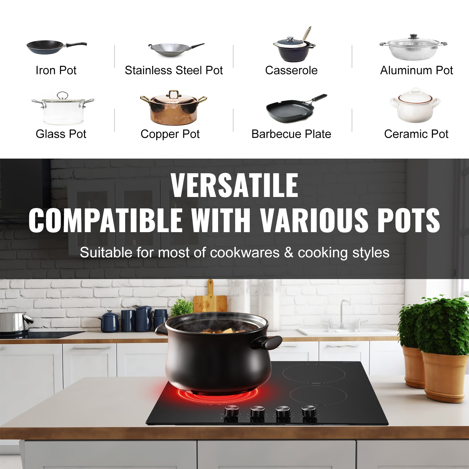 VEVOR Built-in Electric Cooktop Radiant Ceramic Cooktop 4 Burners 23.2x20.5 inch