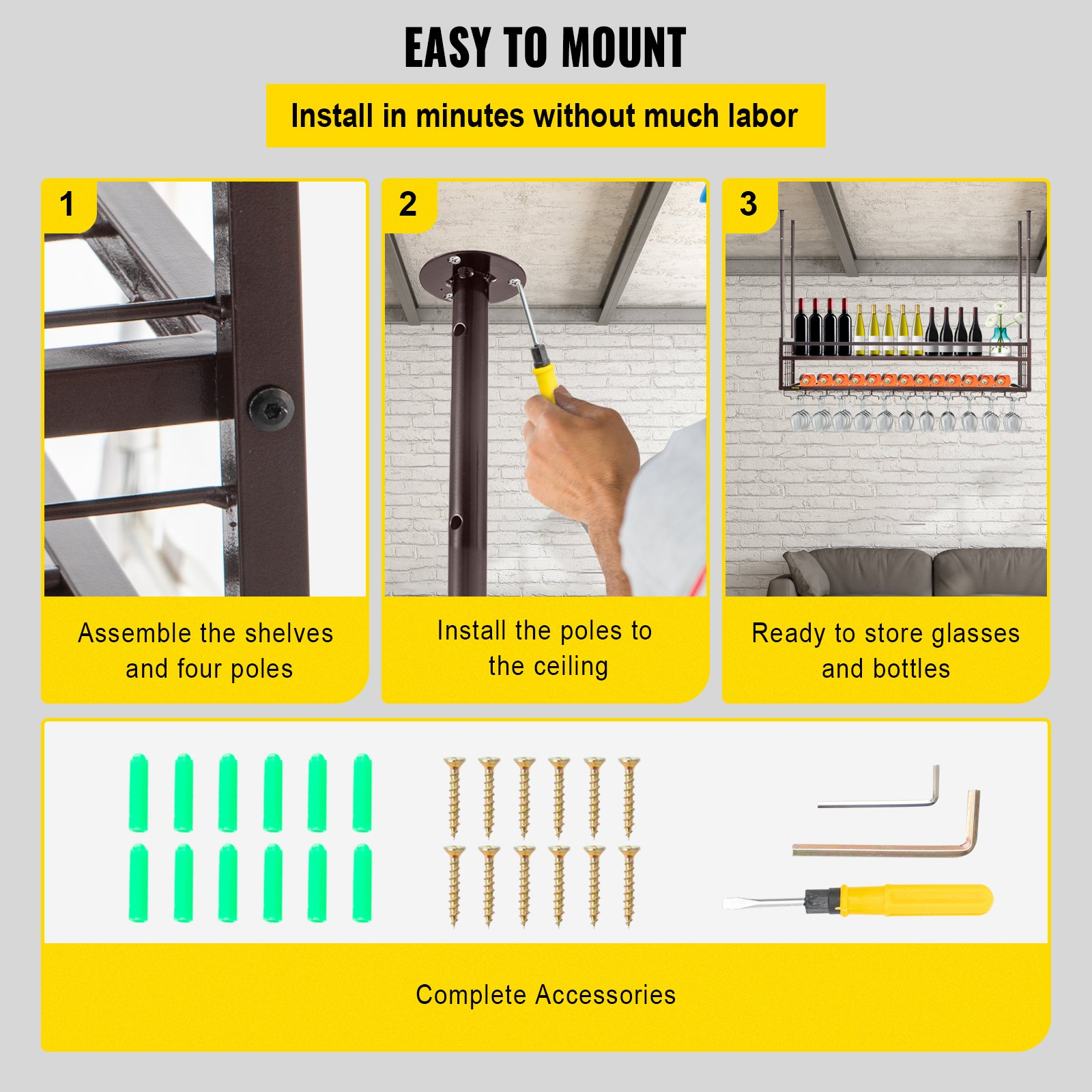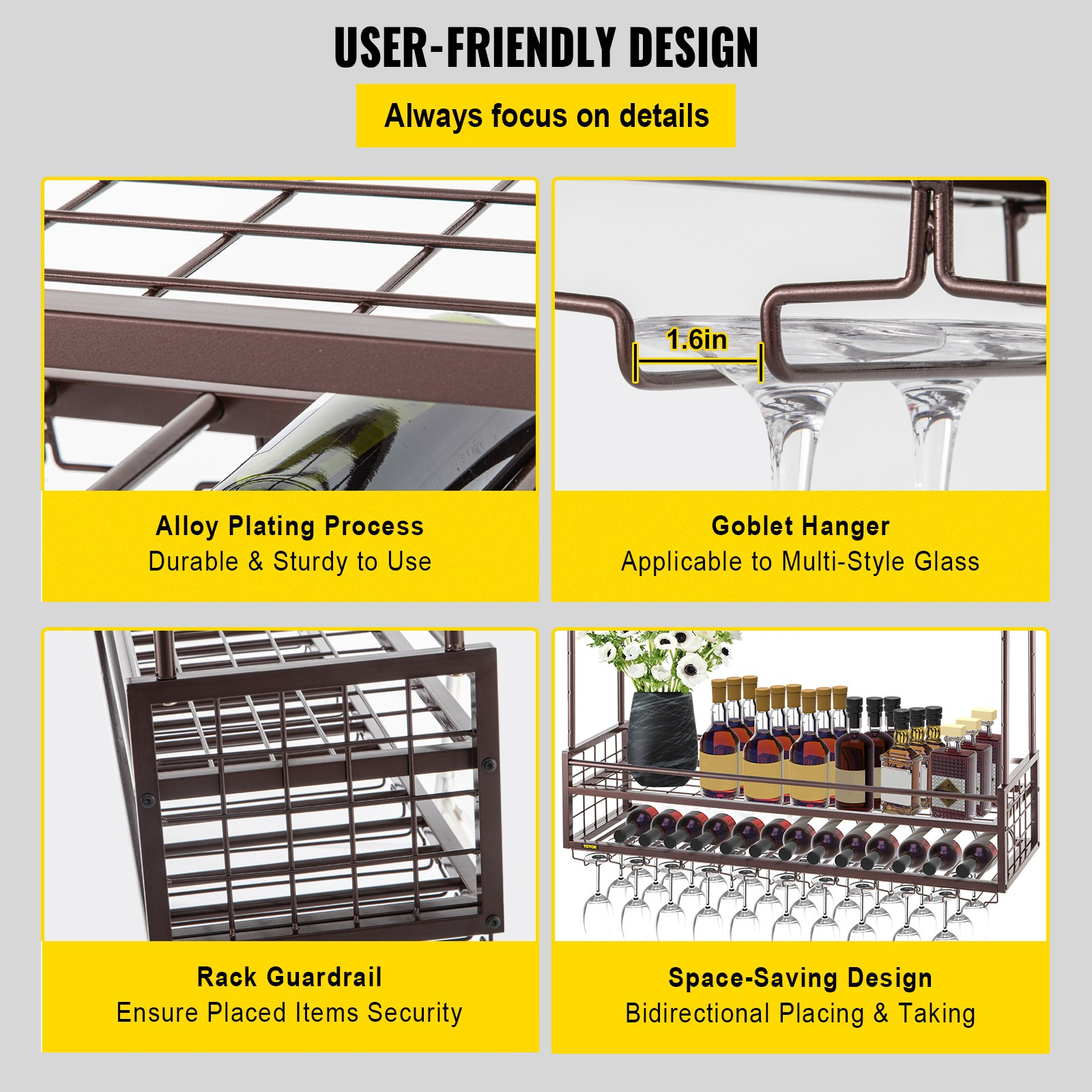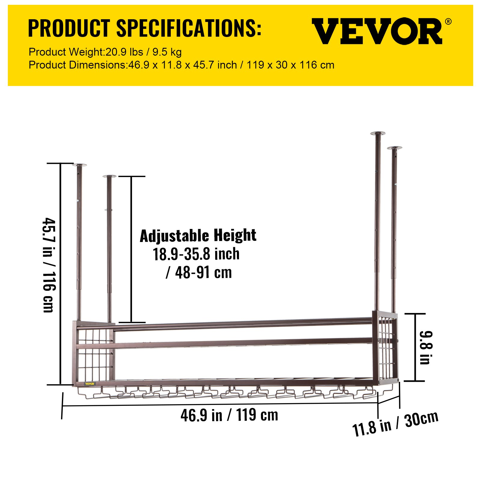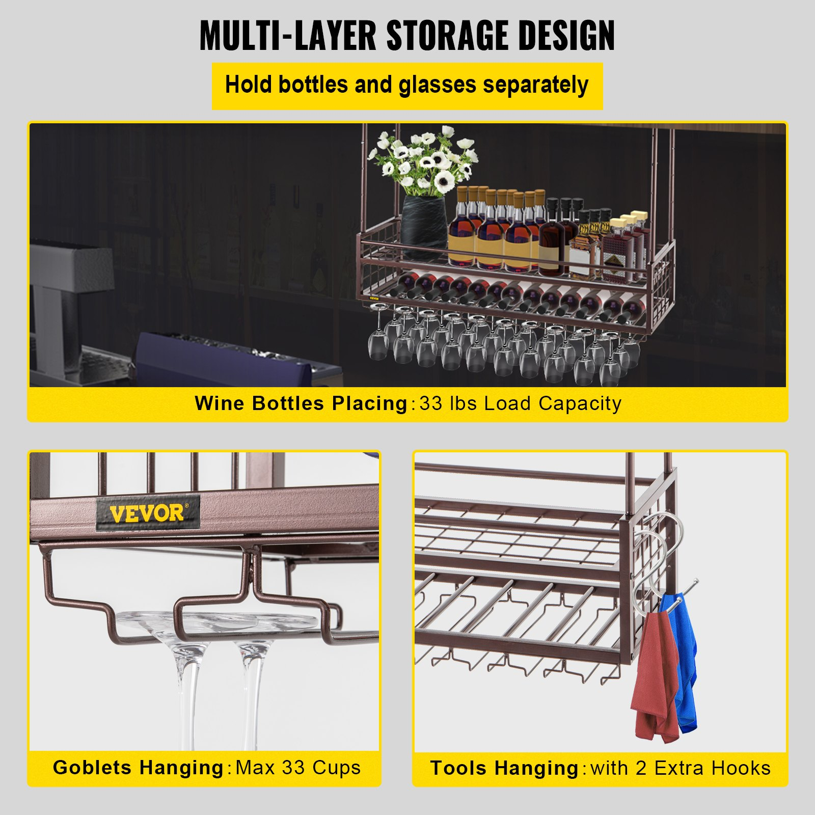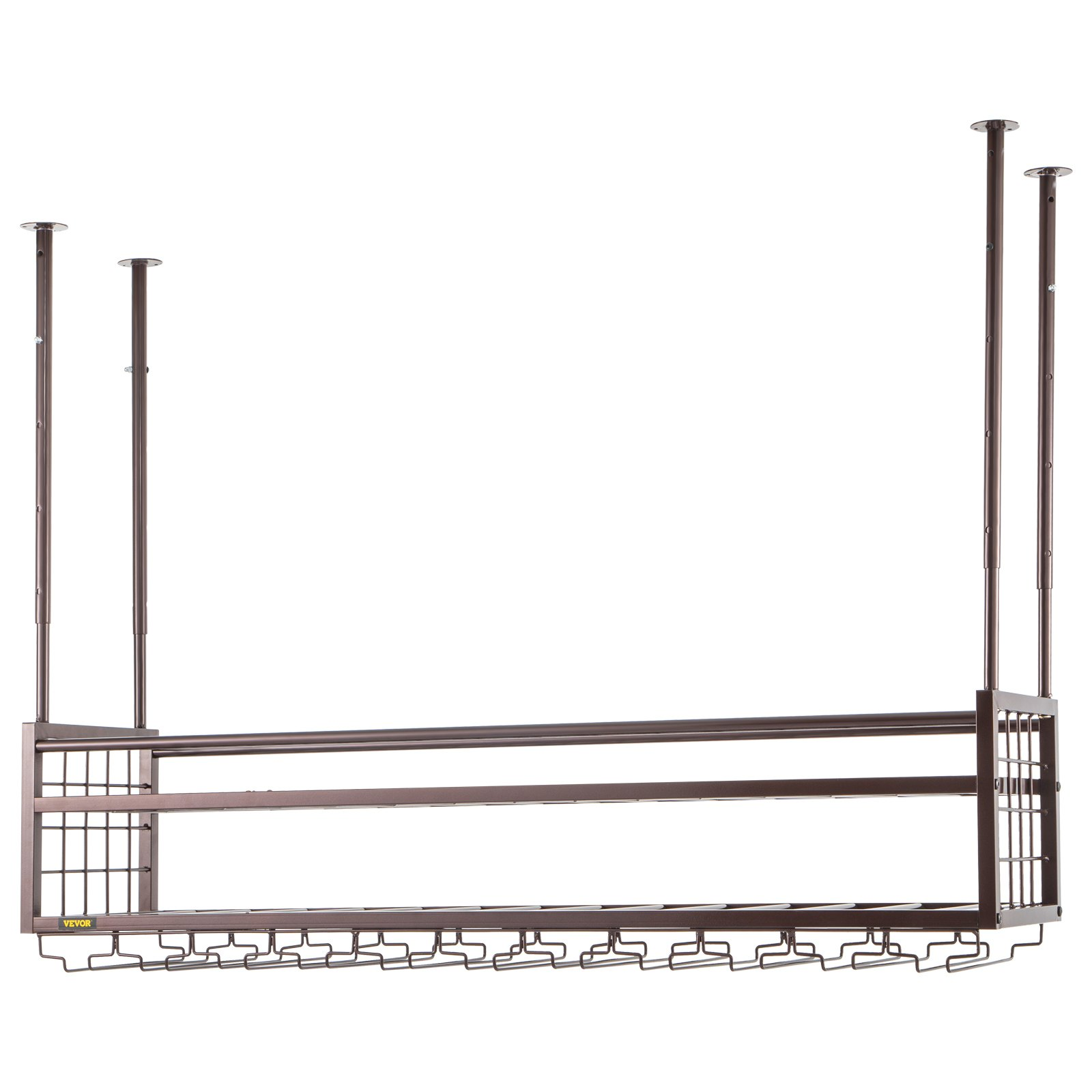 VEVOR Ceiling Wine Glass Rack, 46.9 x 11.8 inch Hanging Wine Glass Rack, 18.9-35.8 inch Height Adjustable Hanging Wine Rack Cabinet, Coppery Wall-Mounted Wine Glass Rack Perfect for Bar Cafe Kitchen