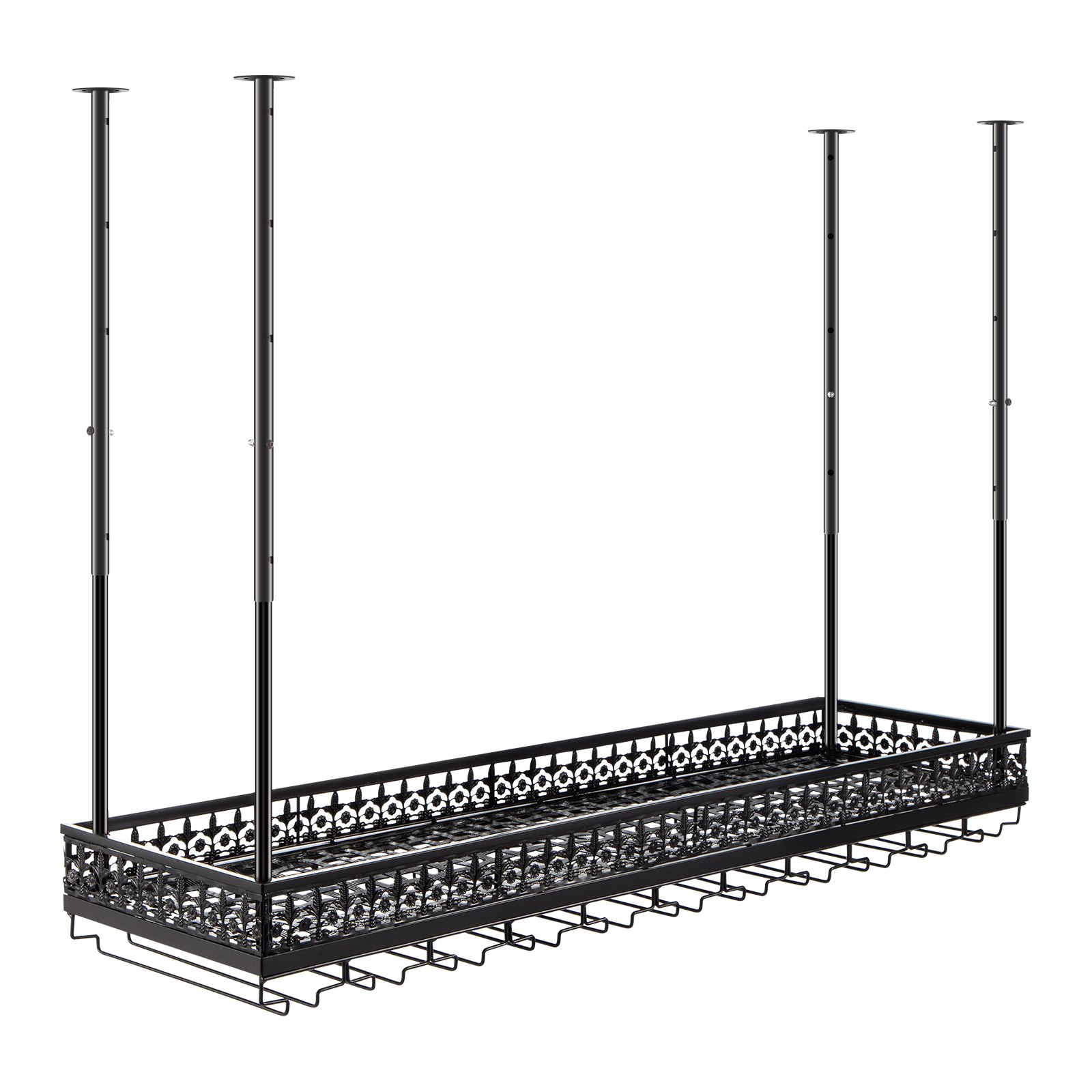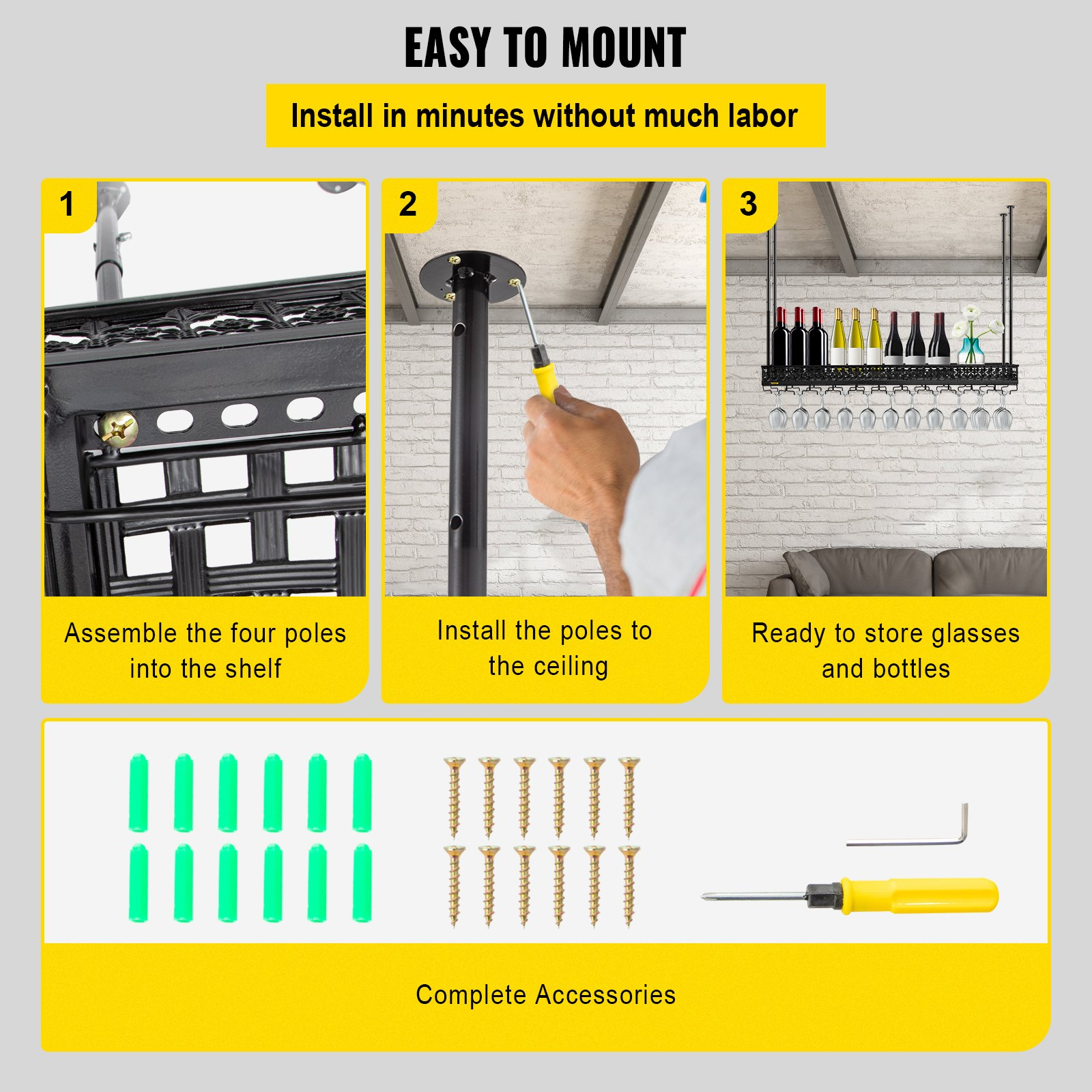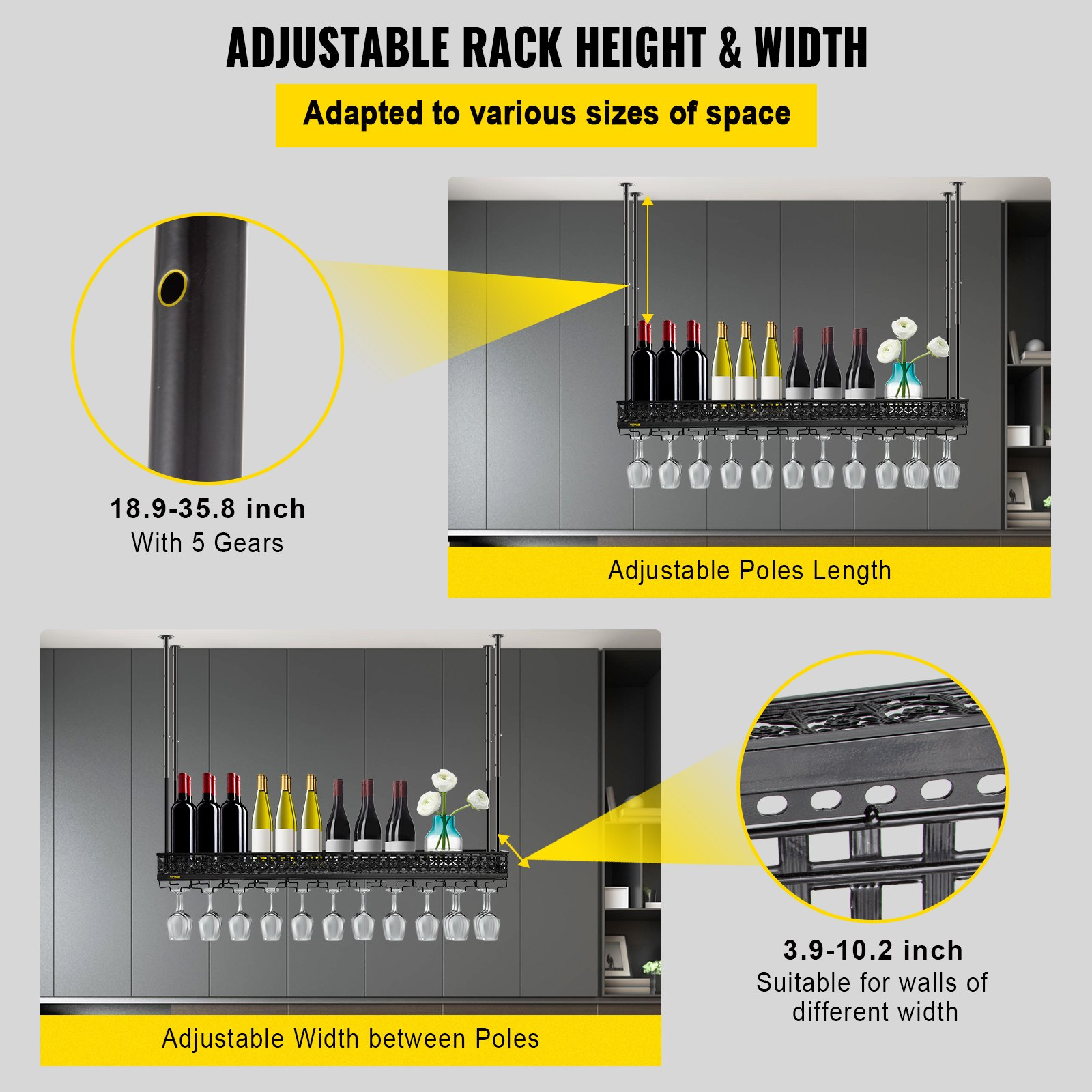 VEVOR Ceiling Wine Glass Rack, 46.9 x 13 inch Hanging Wine Glass Rack, 18.9-35.8 inch Height Adjustable Hanging Wine Rack Cabinet, Black Wall-Mounted Wine Glass Rack Perfect for Bar Cafe Kitchen