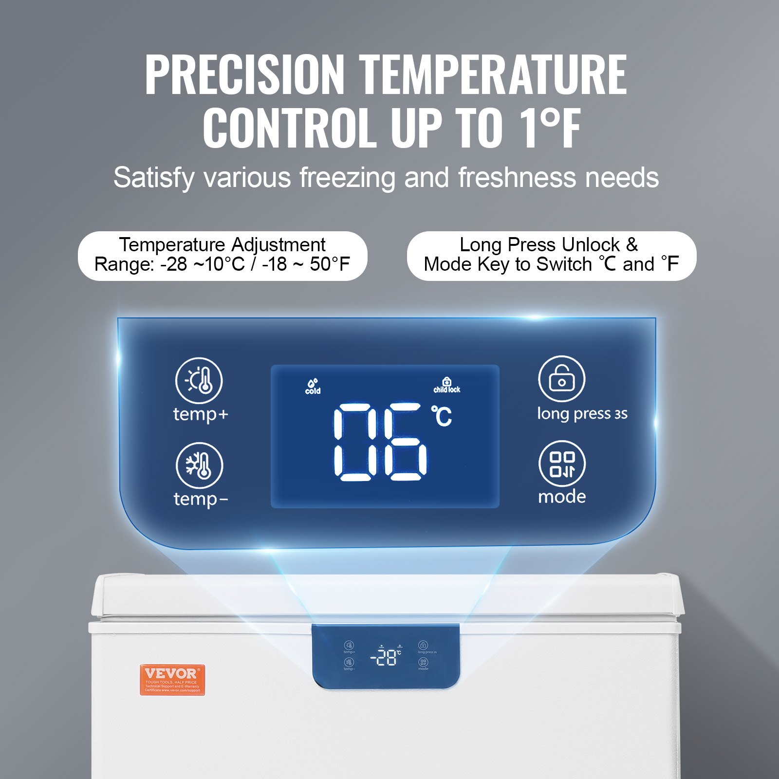 VEVOR Chest Freezer, 3.88 Cu.ft / 110 L Compact Deep Freezer, Free Standing Top Open Door Compact Freezers with 2 Removable Baskets & Adjustable Thermostat, Energy Saving & Low Noise, White