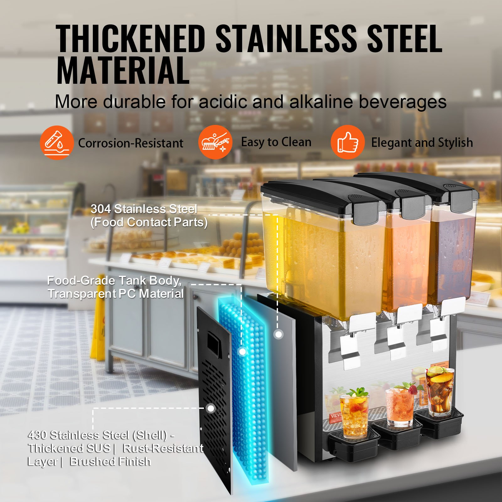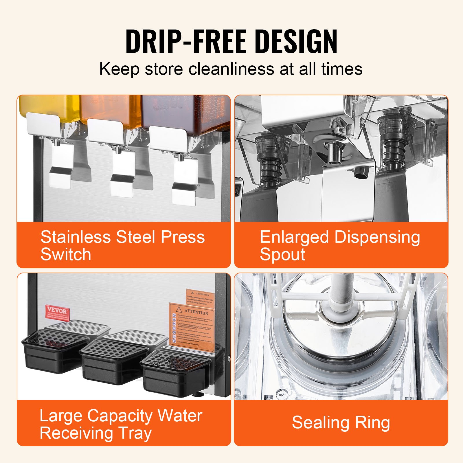 VEVOR Commercial Beverage Dispenser 10L x 3 Tanks Cold Juice Ice Drink Dispenser