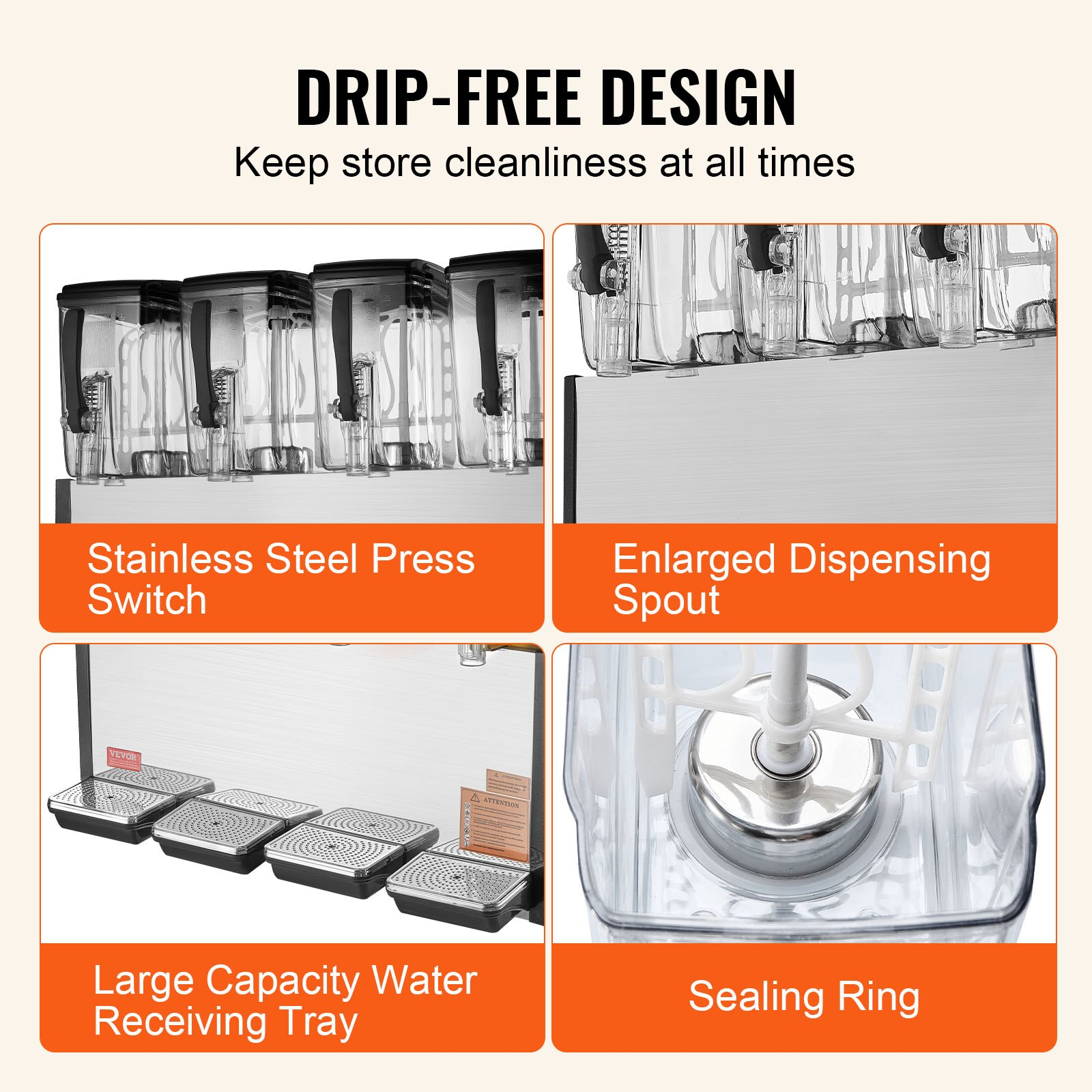 VEVOR Commercial Beverage Dispenser 12L x 4 Tanks Cold Juice Ice Drink Dispenser