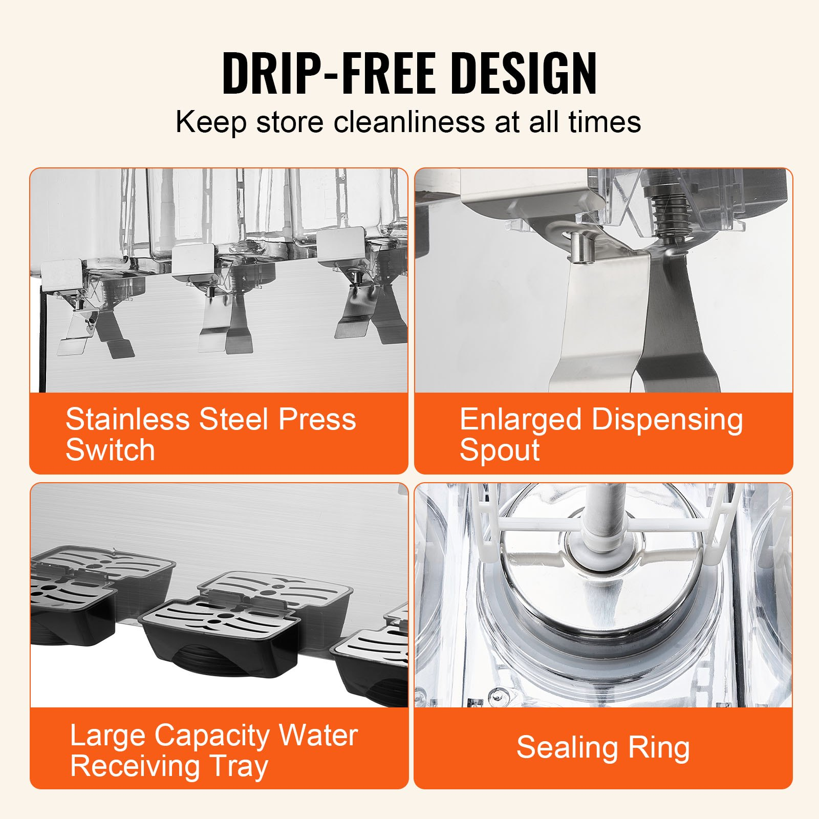 VEVOR Commercial Beverage Dispenser 18L x 3 Tanks Cold Juice Ice Drink Dispenser