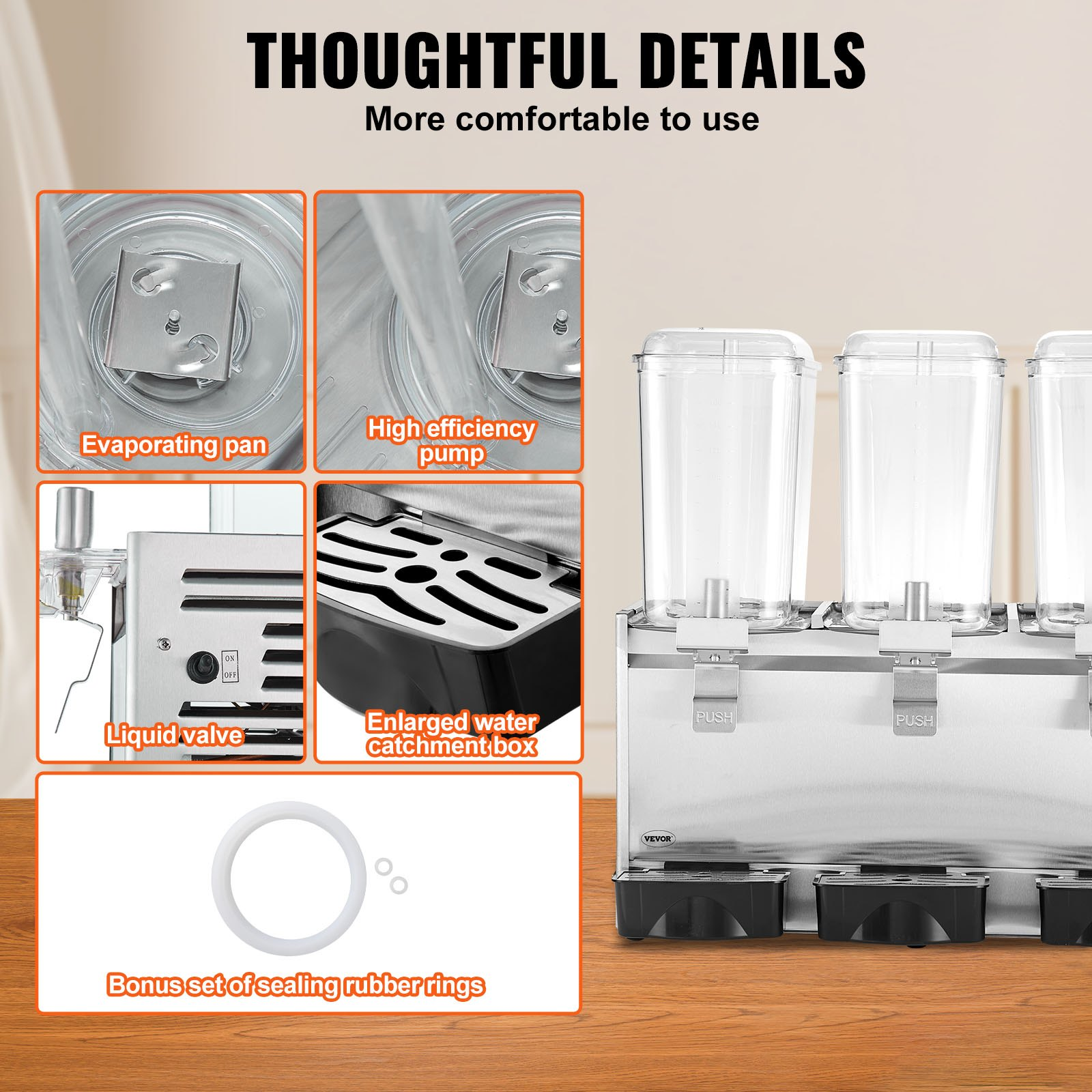 VEVOR Commercial Beverage Dispenser, 20.4 Qt 18L 3 Tanks Ice Tea Drink Machine, 680W 304 Stainless Steel Juice Dispenser with 41℉-53.6℉ Thermostat Controller, for Cold Drink Restaurant Hotel Party