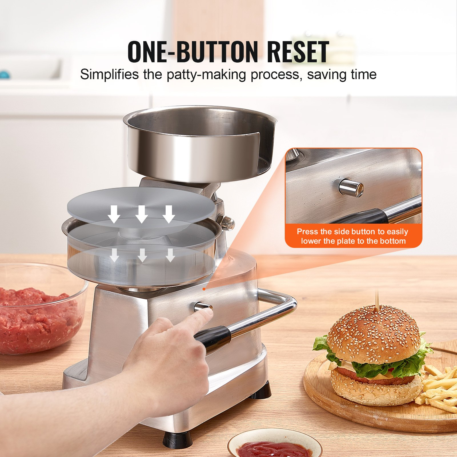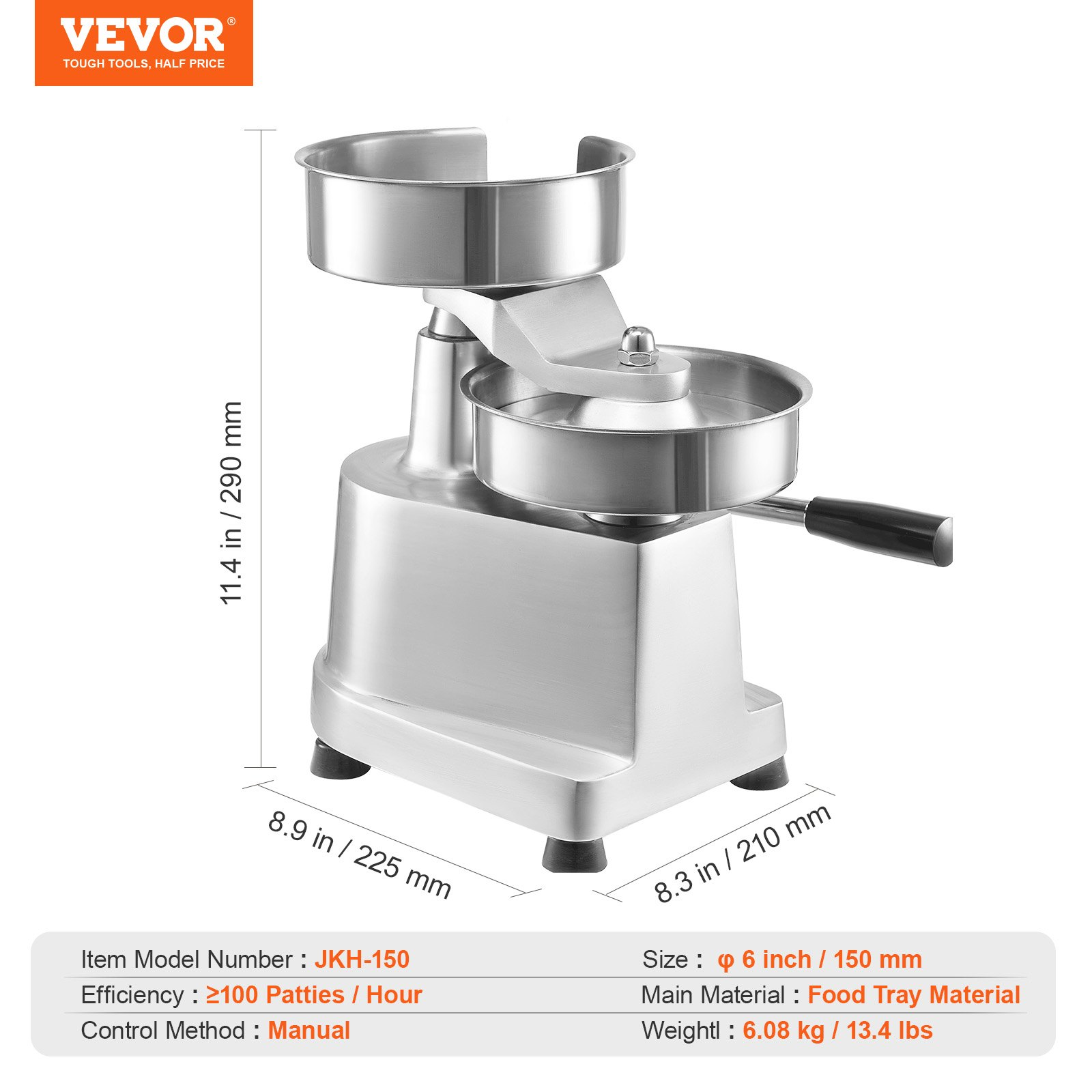 VEVOR Commercial Burger Patty Maker, 150mm/6inch Hamburger Beef Patty Maker, Heavy Duty Food-Grade Stainless Steel Bowl Burger Press Machine, Kitchen Meat Forming Processor with 1000 Pcs Patty Papers