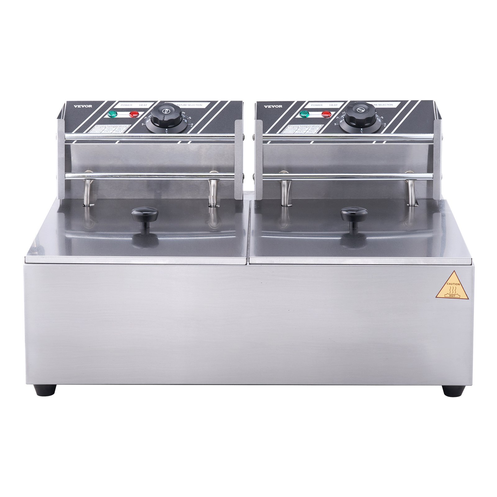 VEVOR Commercial Electric Deep Fryer Countertop Deep Fryer Dual Detachable Tanks