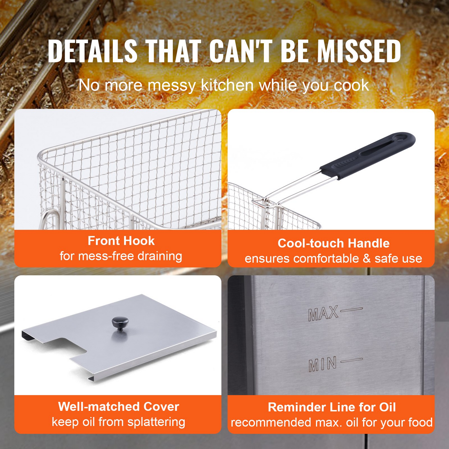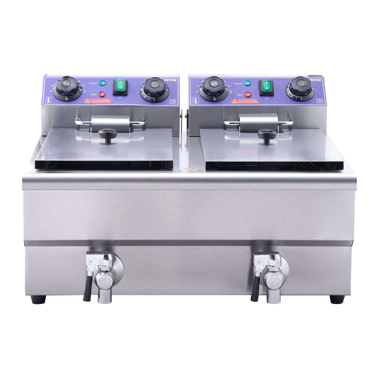 VEVOR Commercial Electric Deep Fryer Countertop Deep Fryer with Dual Tanks 3000W