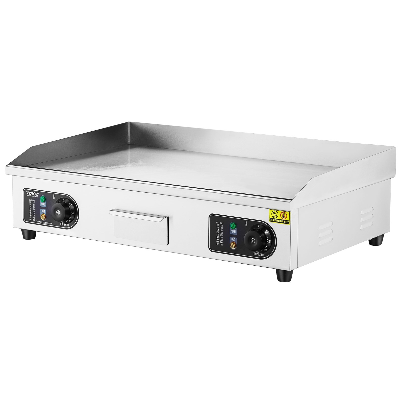VEVOR Commercial Electric Griddle, 2800W Countertop Flat Top Grill, 122℉-572 ℉ Adjustable Temp, 28.74 x 15.75 x 0.39in Stainless Steel Griddle Grill with 2 Shovels and 2 Brushes for Home or Restaurant