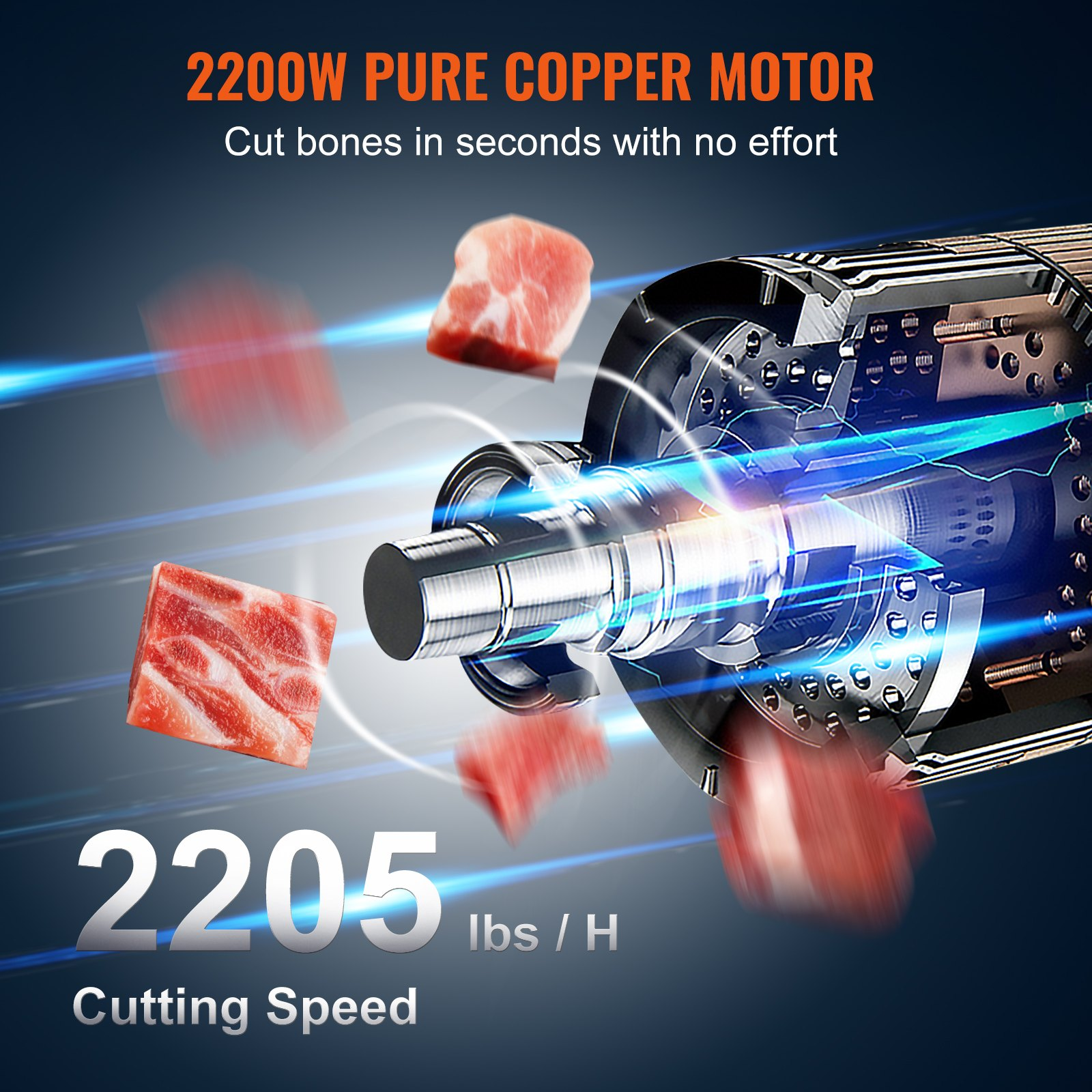 VEVOR Commercial Electric Meat Bandsaw, 2200W Stainless Steel Countertop Bone Sawing Machine, Workbeach 18.5" x 20.9", 0-7.1 Inch Cutting Thickness, Frozen Meat Cutter with 6 Blades for Rib Pork Beef