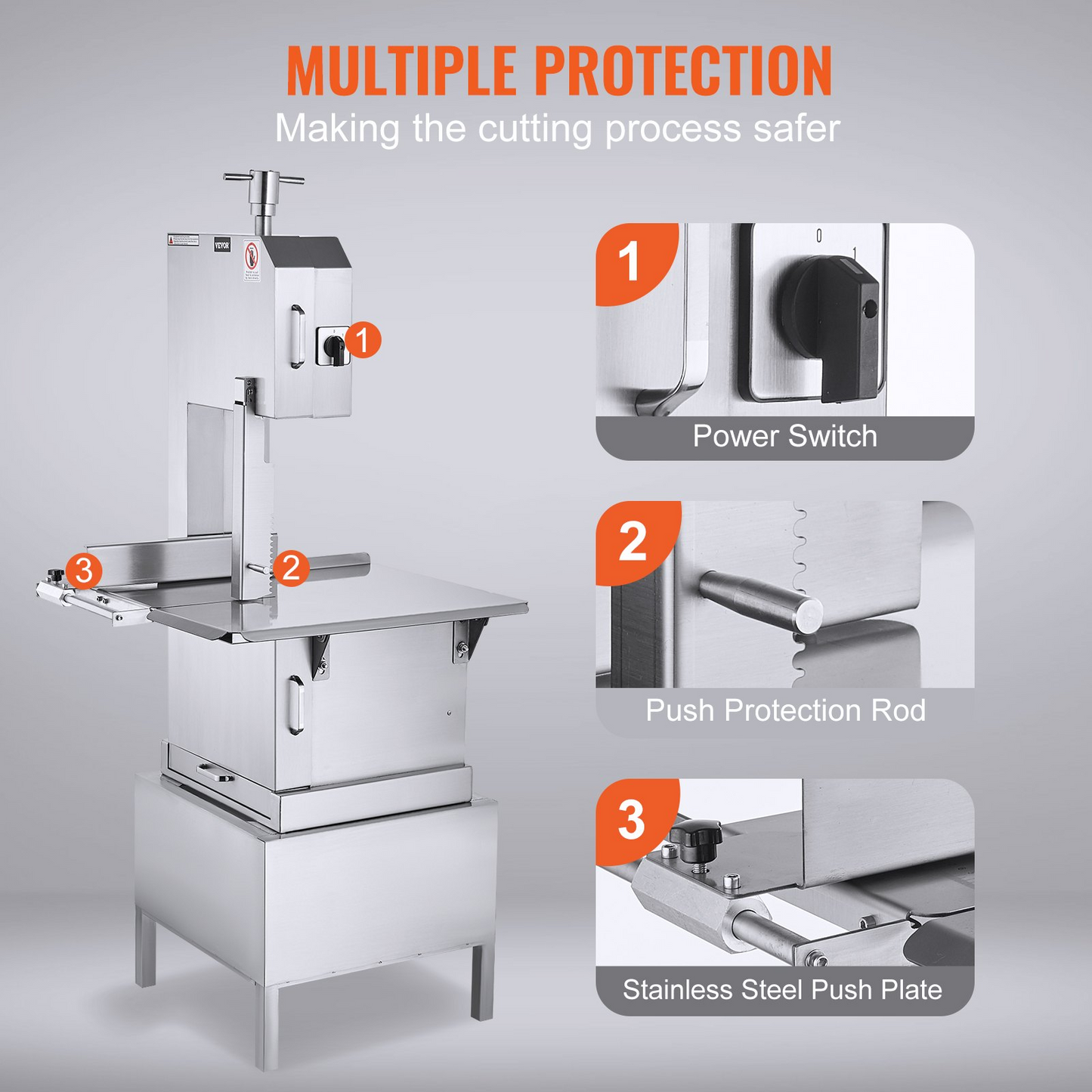 VEVOR Commercial Electric Meat Bandsaw, 2200W Stainless Steel Vertical Bone Sawing Machine, Workbeach 24.4" x 20.5", 0.16-8.7 Inch Cutting Thickness, Frozen Meat Cutter with 6 Blades for Rib Pork Beef