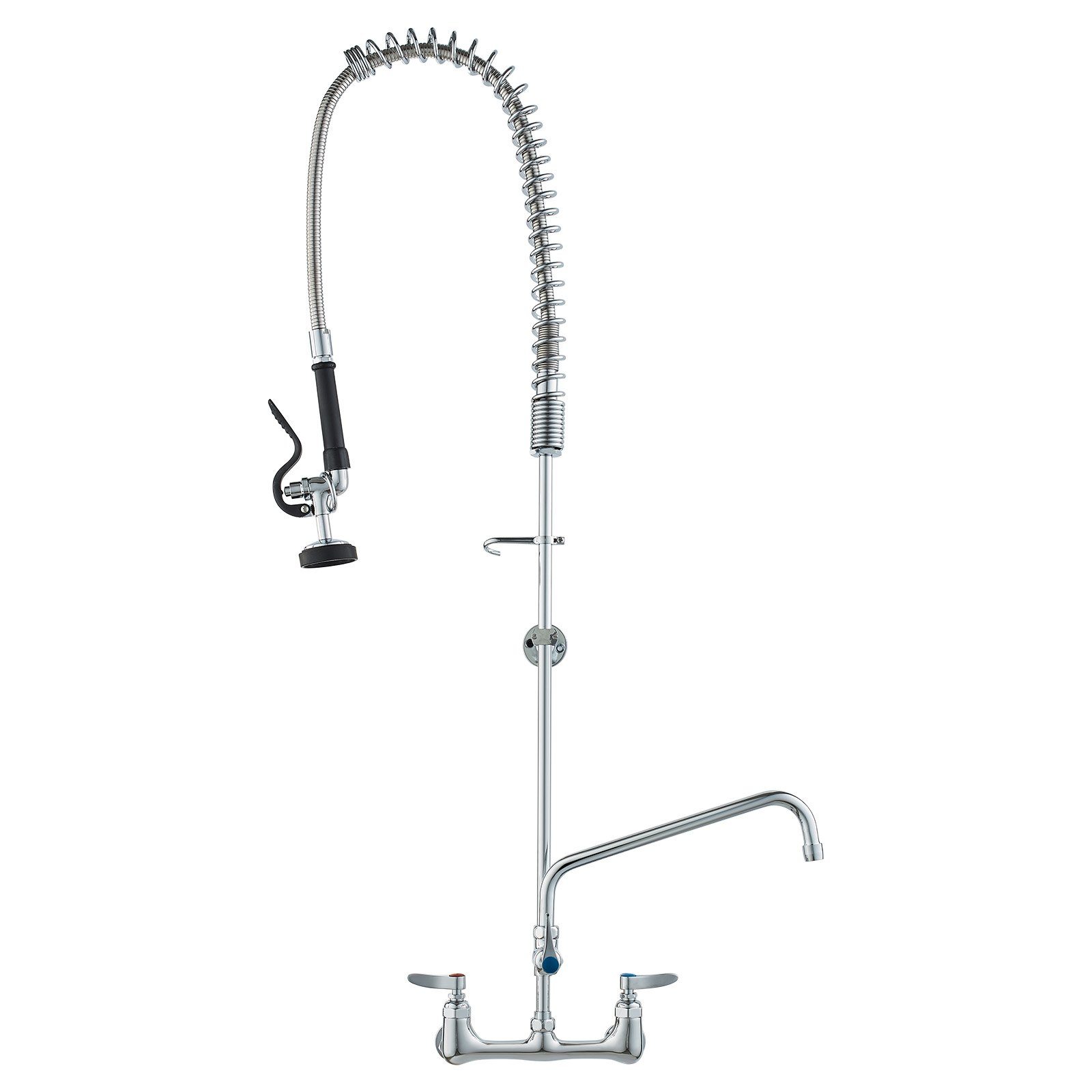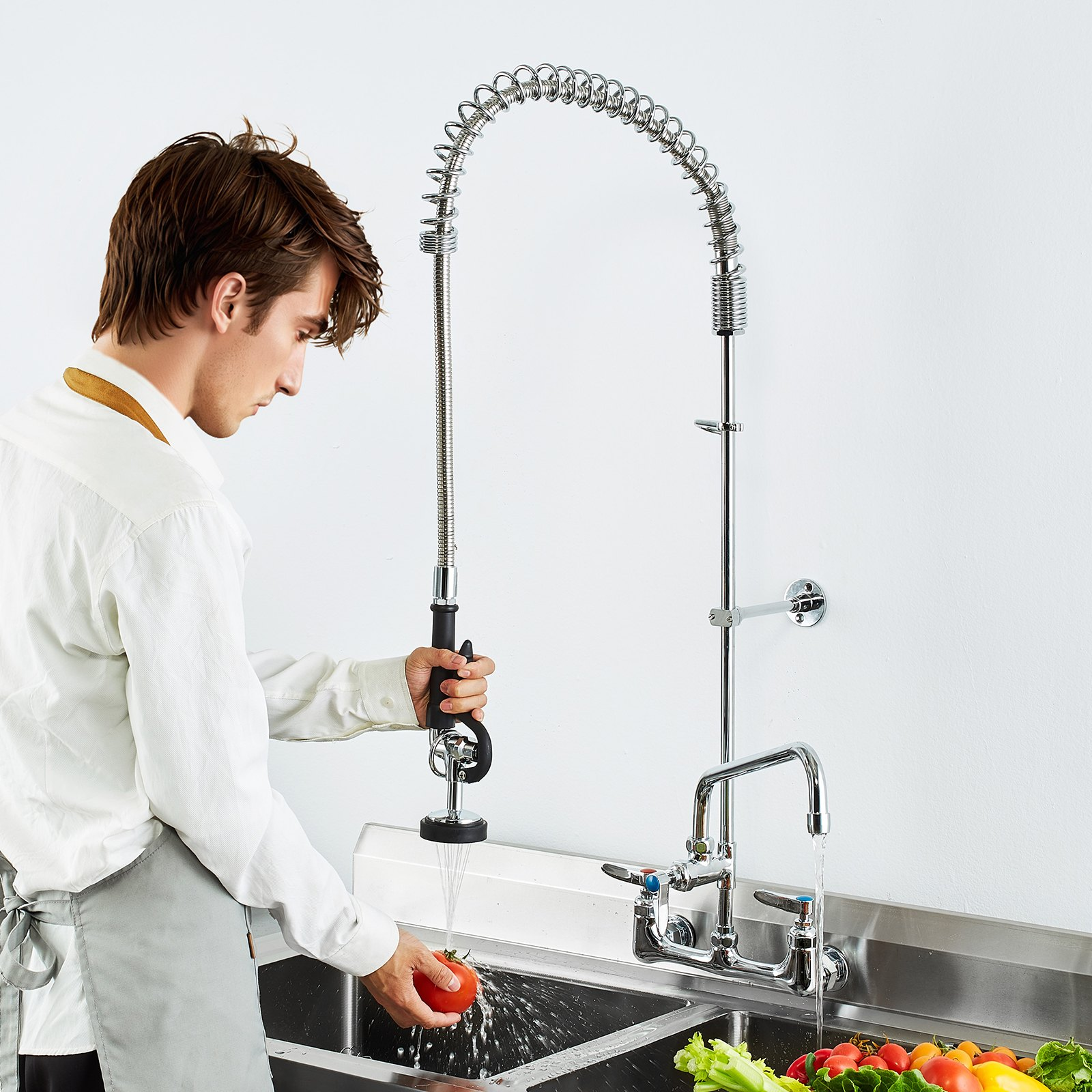 VEVOR Commercial Faucet with Pre-Rinse Sprayer, 47" Height, 8" Center, 12" Swing Spout, Wall Mount Kitchen Sink Faucet, Brass Constructed Device with Pull Down Spray, for 1/2/3 Compartment Sink