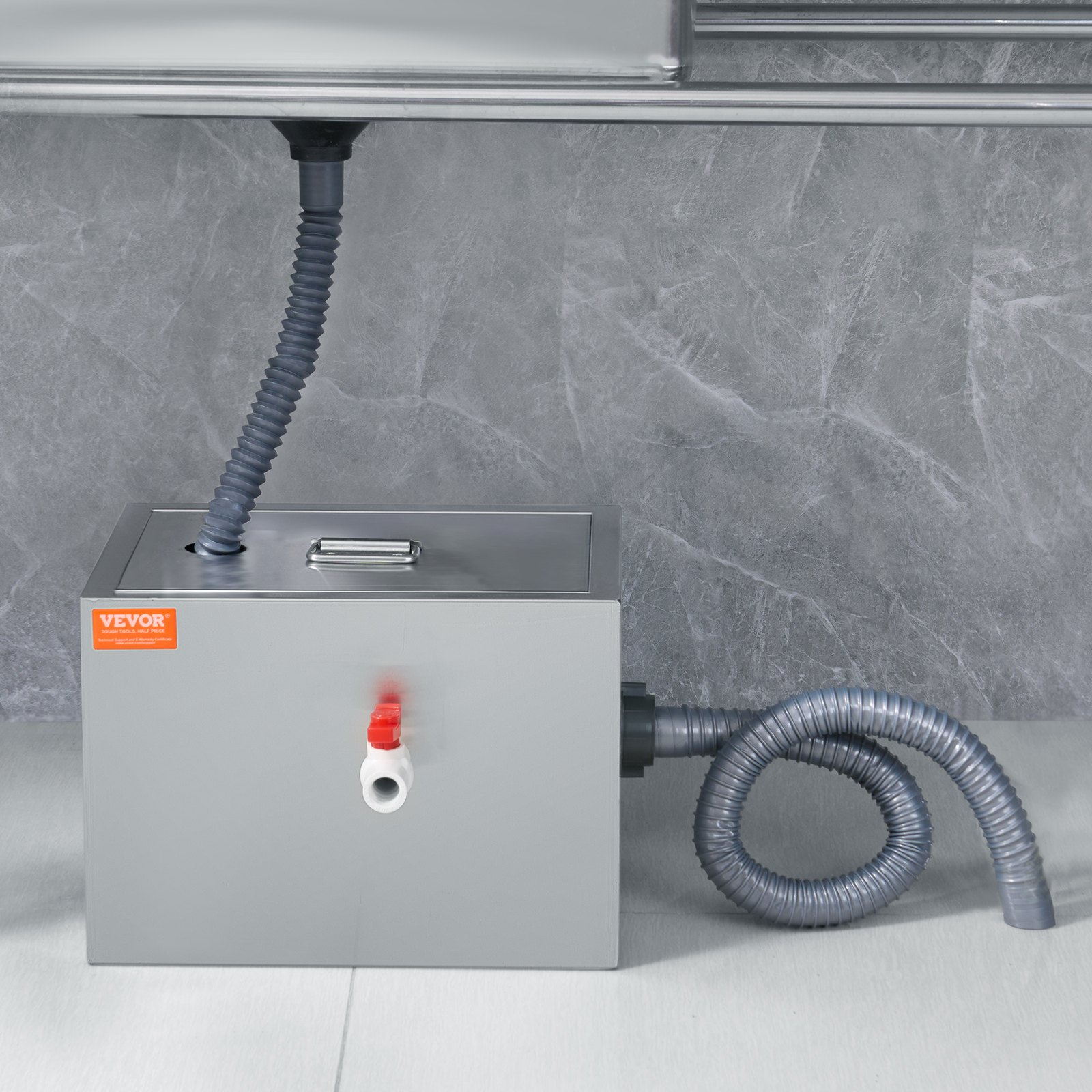 VEVOR Commercial Grease Trap, 8 LBS Grease Interceptor, Top Inlet Interceptor, Under Sink Stainless Steel Grease Trap, 2.8 GPM Waste Water Oil-water Separator, for Restaurant Canteen Home Kitchen