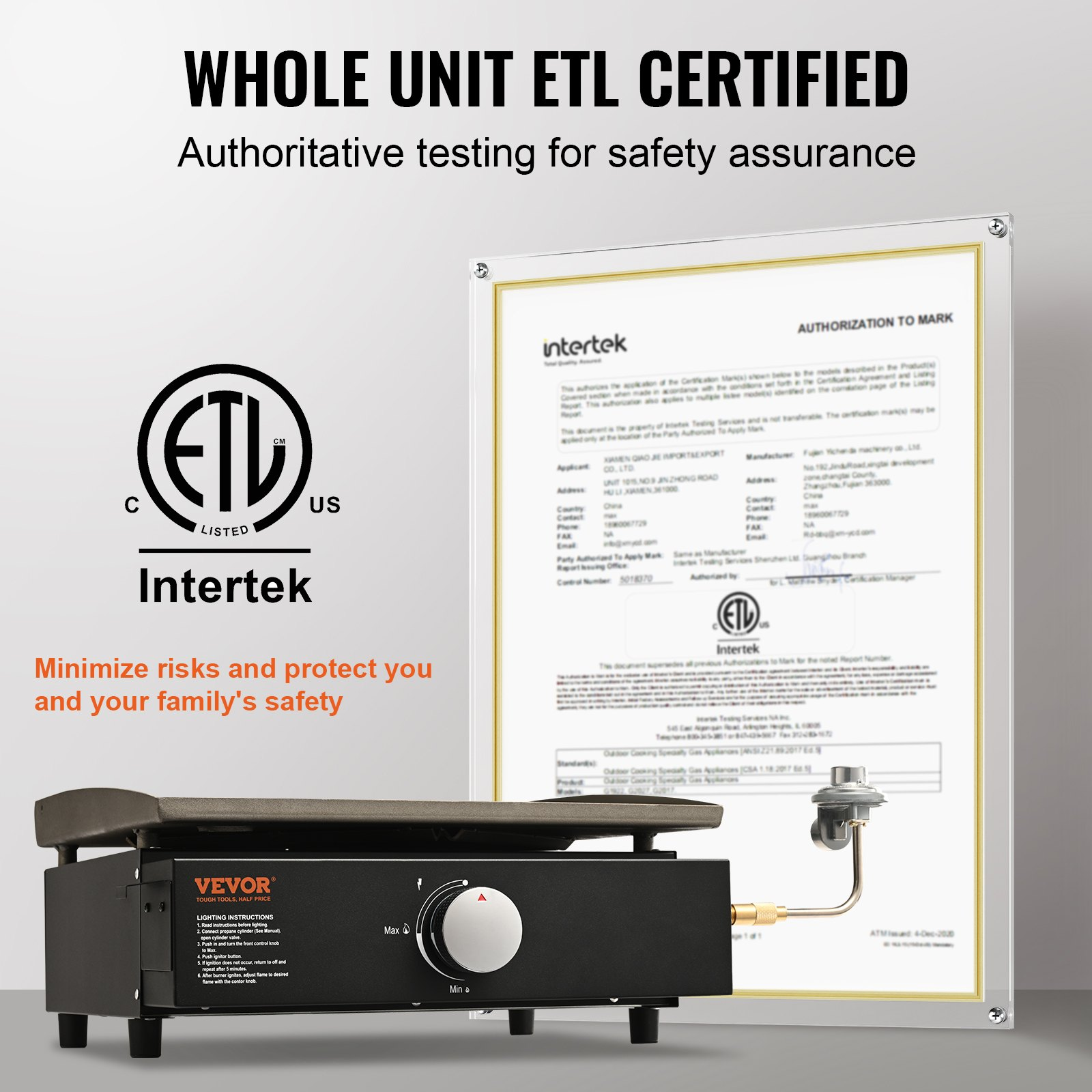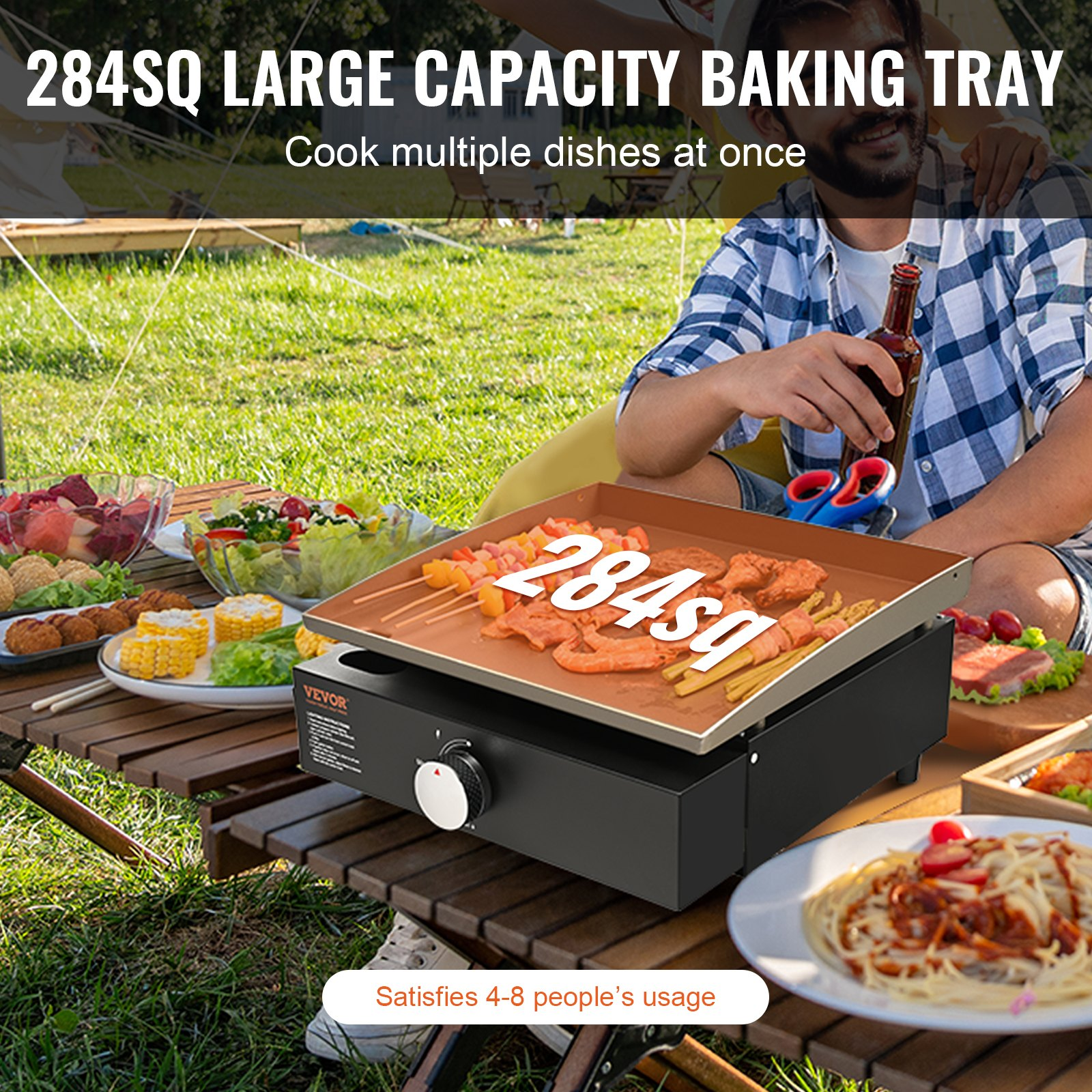 VEVOR Commercial Griddle, 16.9" Heavy Duty Manual Flat Top Griddle, Countertop Gas Grill with Non-Stick Cooking Plate, Steel LPG Gas Griddle, 1-Burner Restaurant Portable Grill - 13,000 BTU