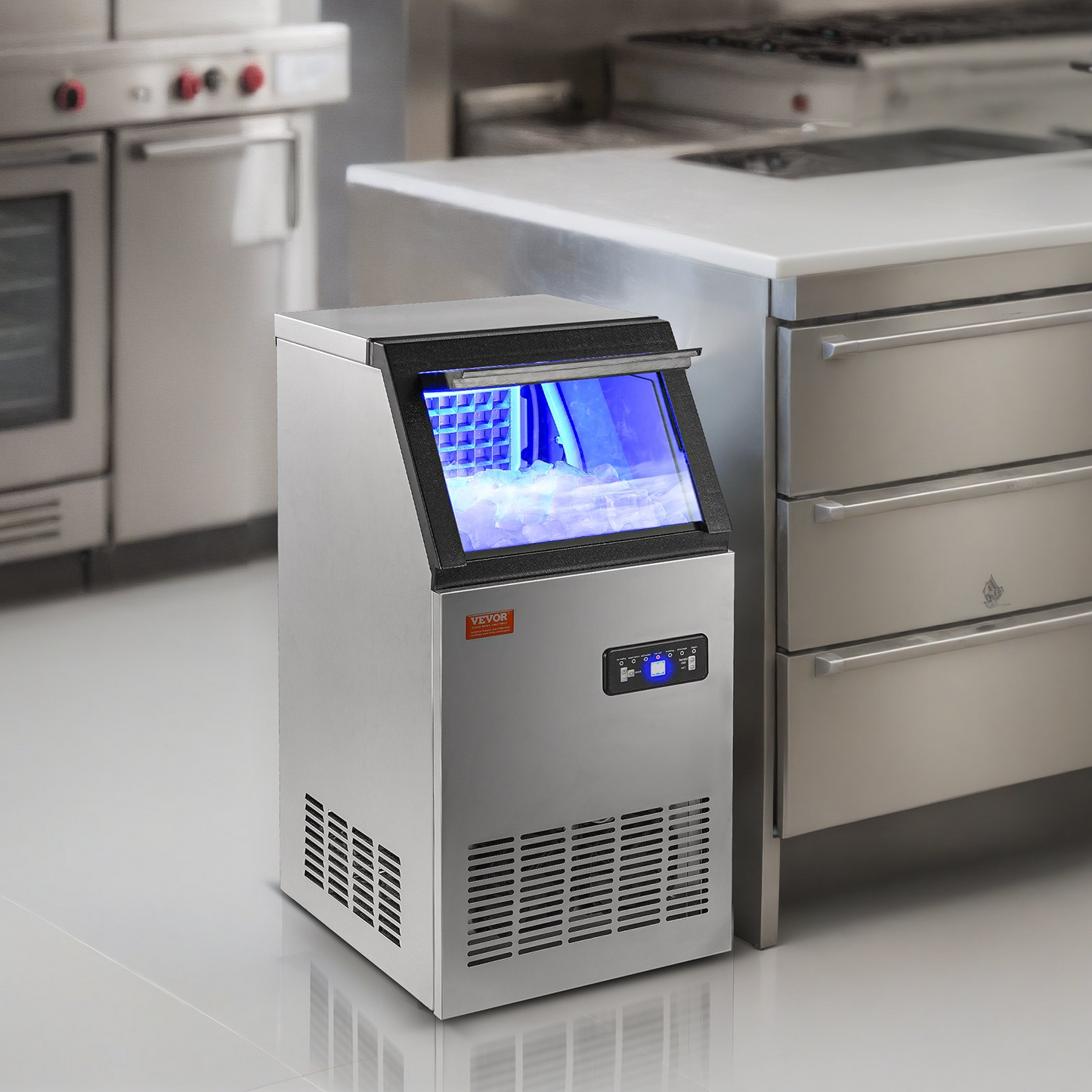 VEVOR Commercial Ice Maker, 80lbs/24H, Ice Maker Machine, 40 Ice Cubes in 12-15 Minutes, Freestanding Cabinet Ice Maker with 15lbs Storage Capacity LED Digital Display, for Bar Home Office Restaurant