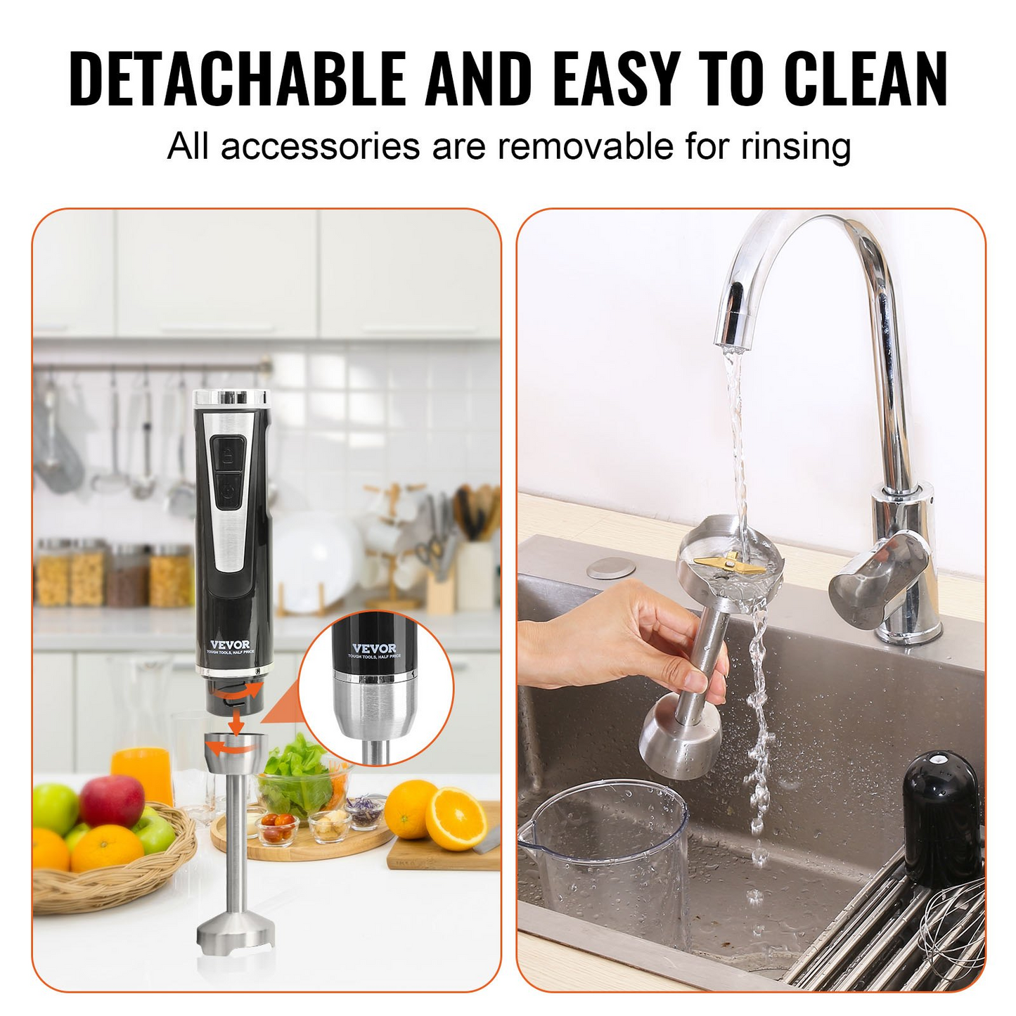 VEVOR Commercial Immersion Blender, 200 Watt 8-Speed Heavy Duty Immersion Blender, Stainless Steel Blade Copper Motor Hand Mixer, USB Charging Cable Multi-purpose Easy Control Grip Stick Mixer, Black