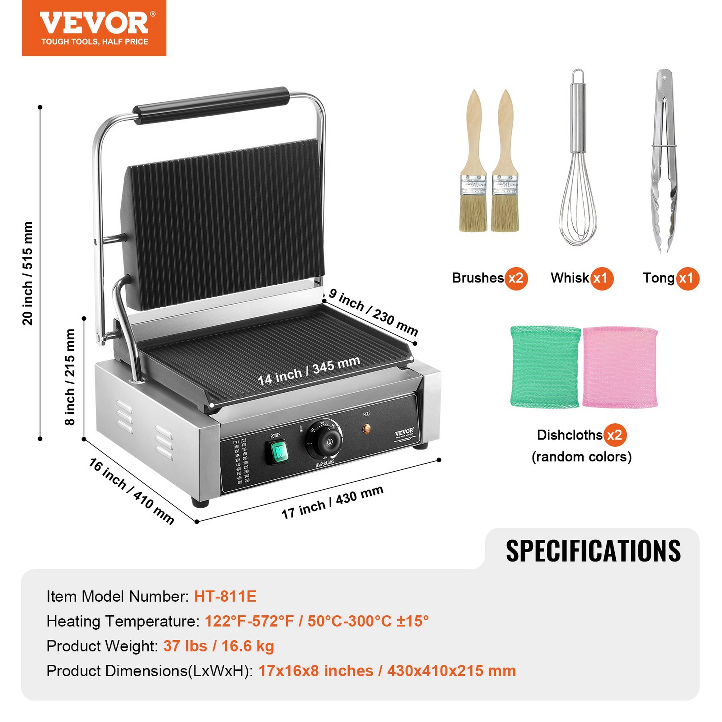 VEVOR Commercial Panini Press Grill Electric Sandwich Maker Griddle Plate 14"x9"