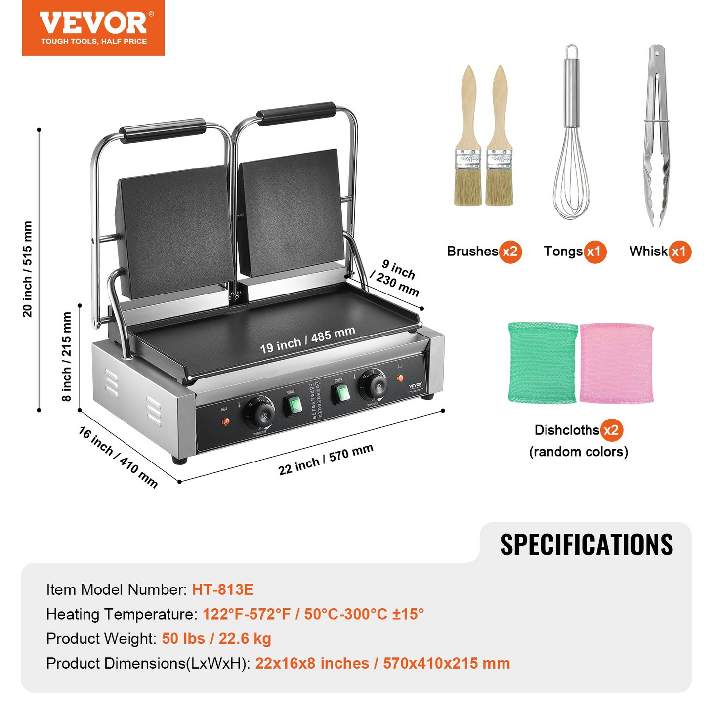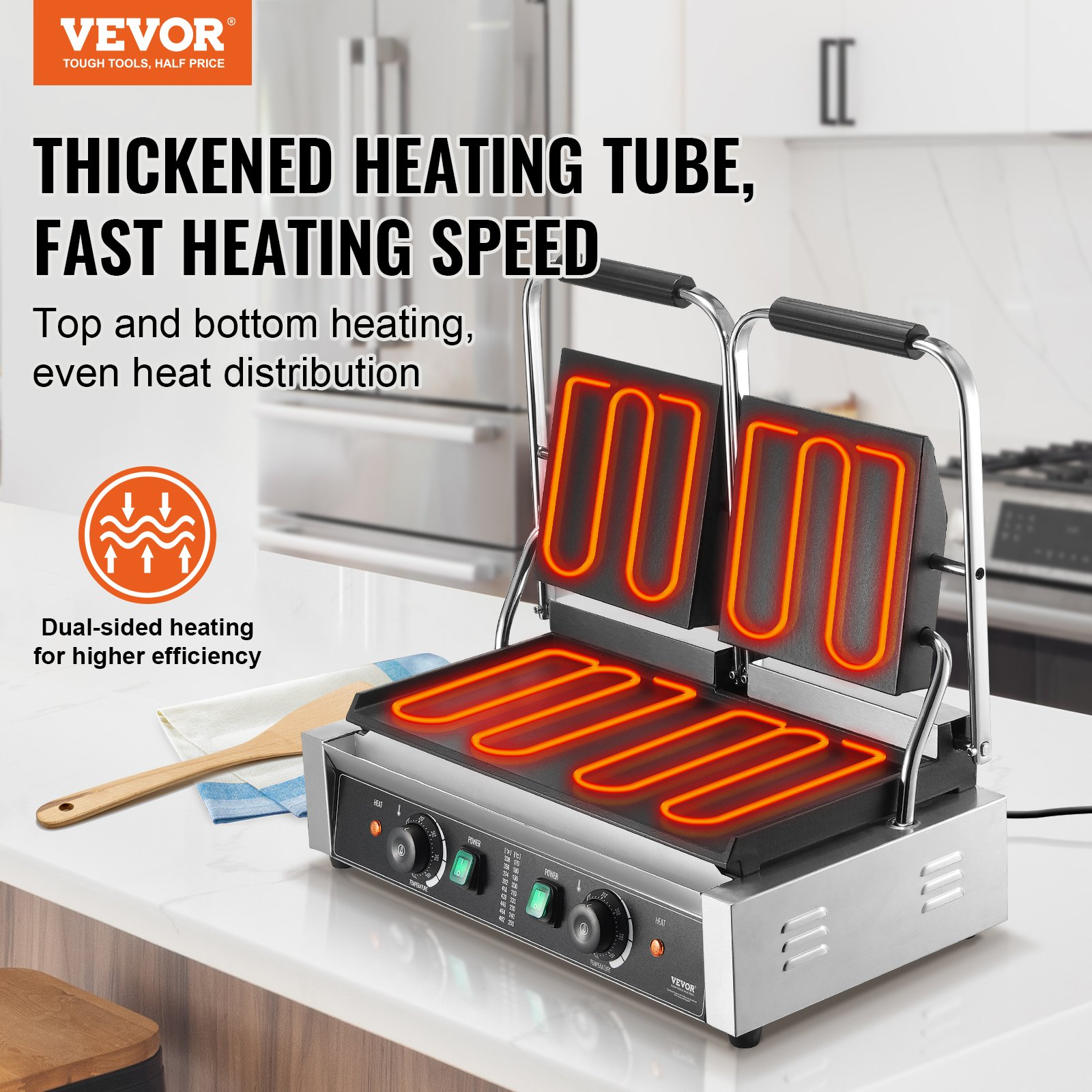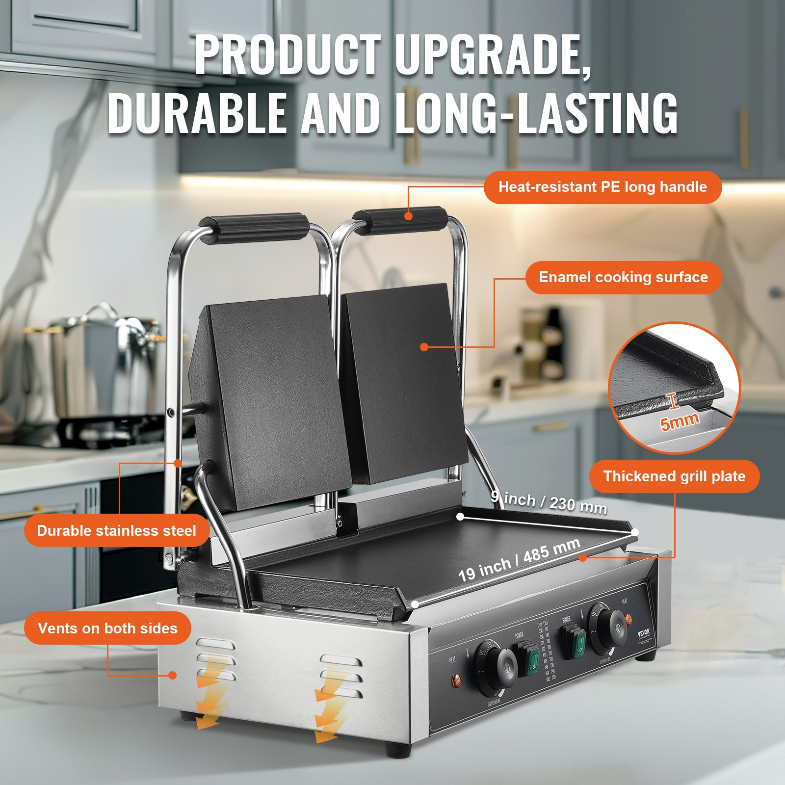 VEVOR Commercial Panini Press Grill Electric Sandwich Maker Griddle Plate 19"x9"