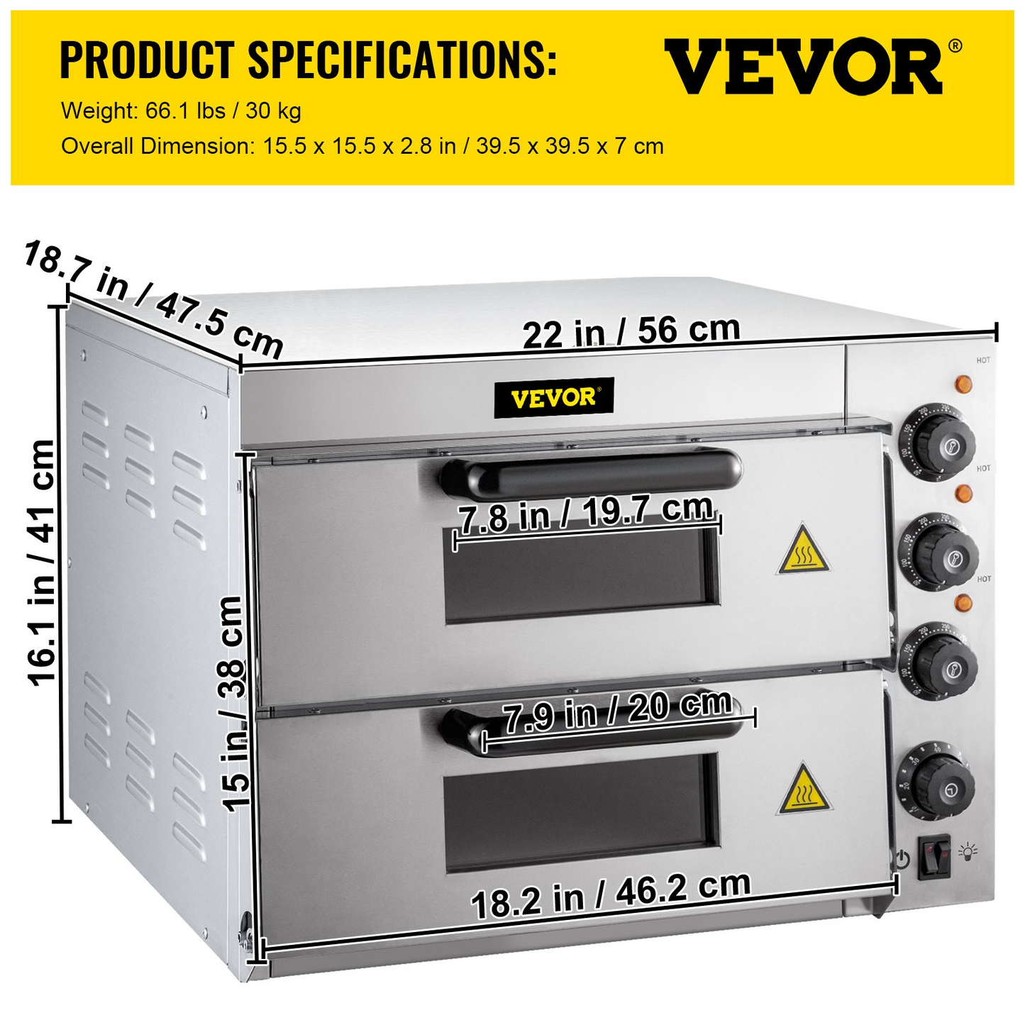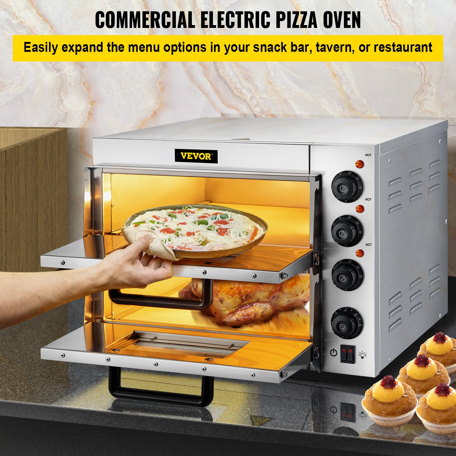 VEVOR Commercial Pizza Oven Countertop, 14" Double Deck Layer, 110V 1950W Stainless Steel Electric Pizza Oven with Stone and Shelf, Multipurpose Indoor Pizza Maker for Restaurant Home Pretzels Baked