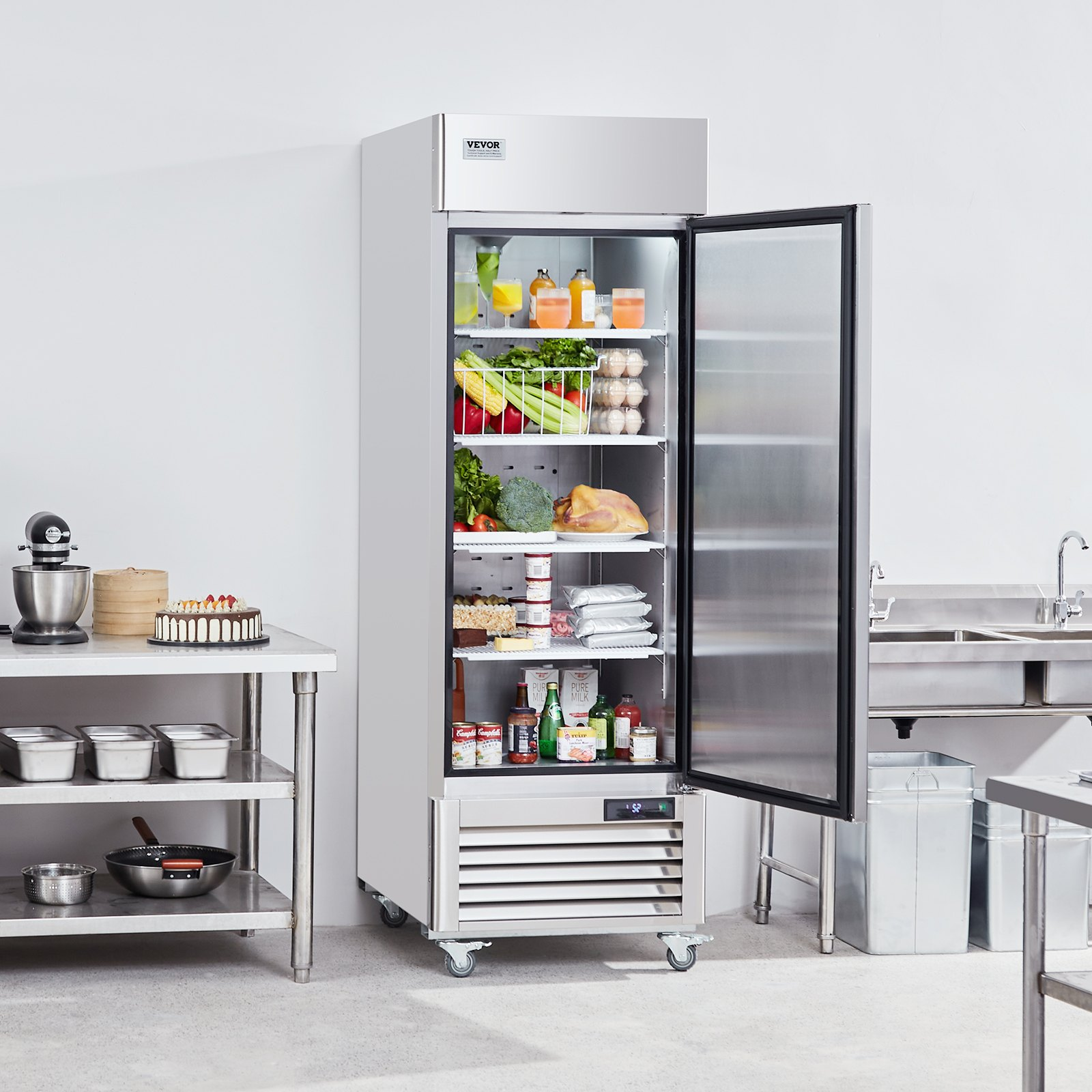 VEVOR Commercial Refrigerator 19.32 Cu.ft, Reach In 27" W Upright Refrigerator Single Door, Auto-Defrost Stainless Steel Reach-in Refrigerator & 4 Shelves, 33 to 41℉ Temp Control, LED Light, 4 Wheel