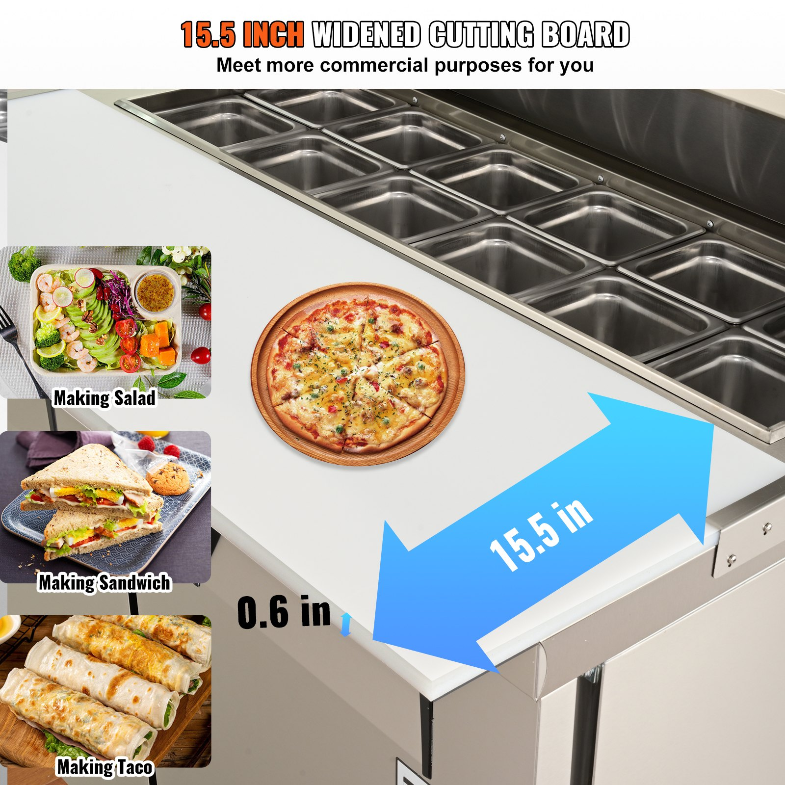 VEVOR Commercial Refrigerator, 48" Sandwich & Salad Prep Table, 12.85 Cu. Ft Thick Stainless Steel Refrigerated Food Prep Station with 12 Pans Cutting Board, 2 Door Fridge for Restaurant, Bar, Shop