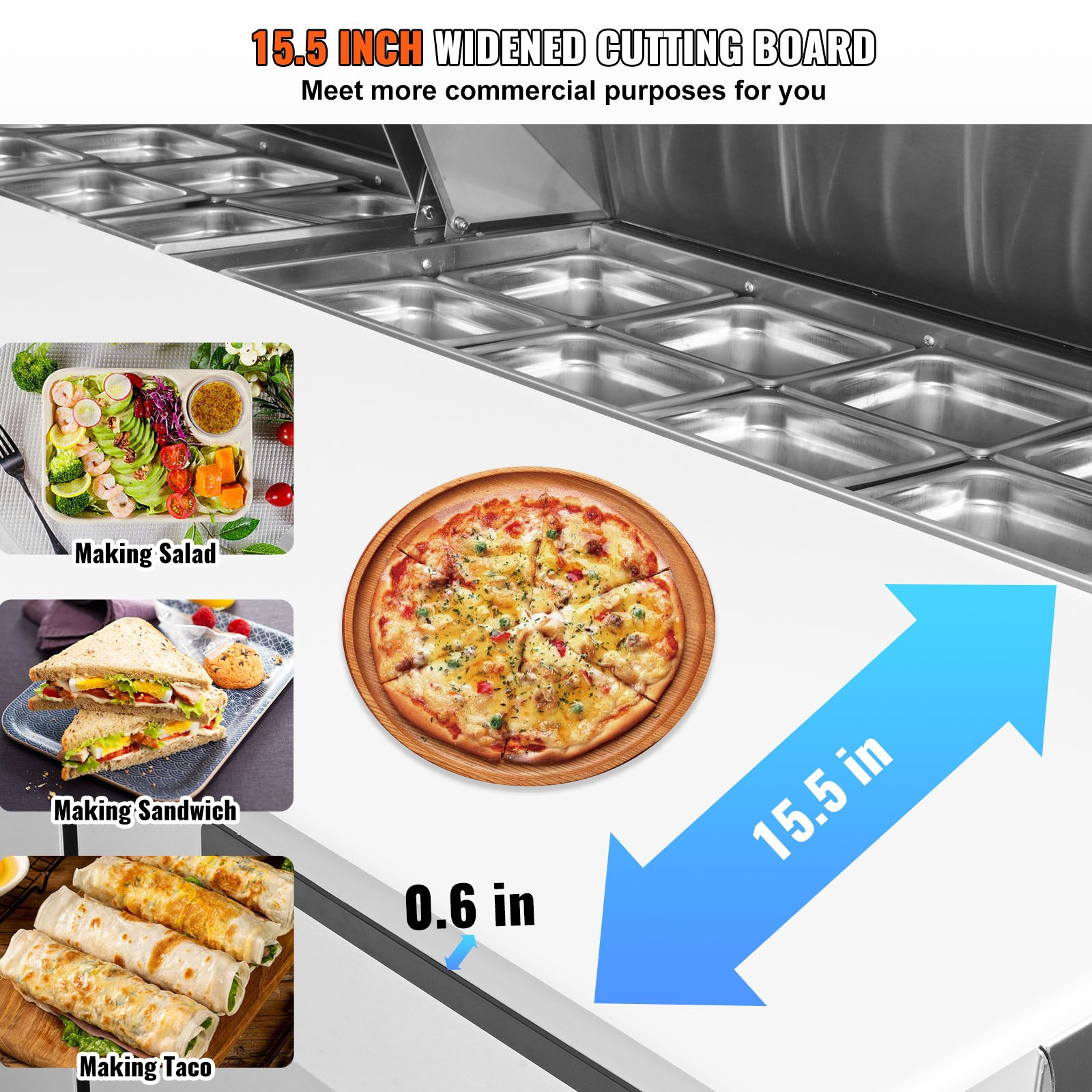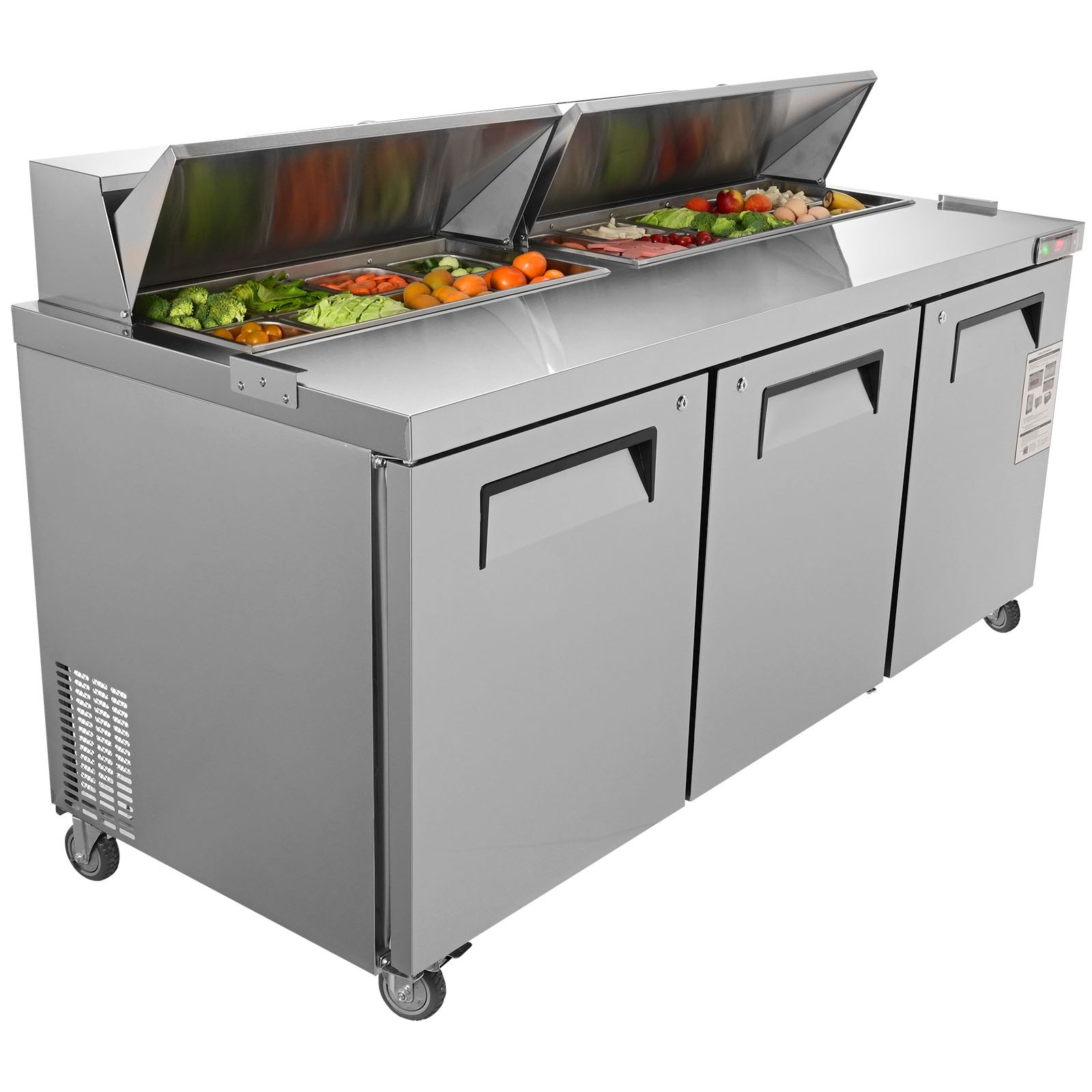 VEVOR Commercial Refrigerator, 72" Sandwich & Salad Prep Table, 17.73 Cu. Ft Stainless Steel Refrigerated Food Prep Station with 18 Pans, Cut Board, 3 Door Worktop Fridge with lock for Restaurant
