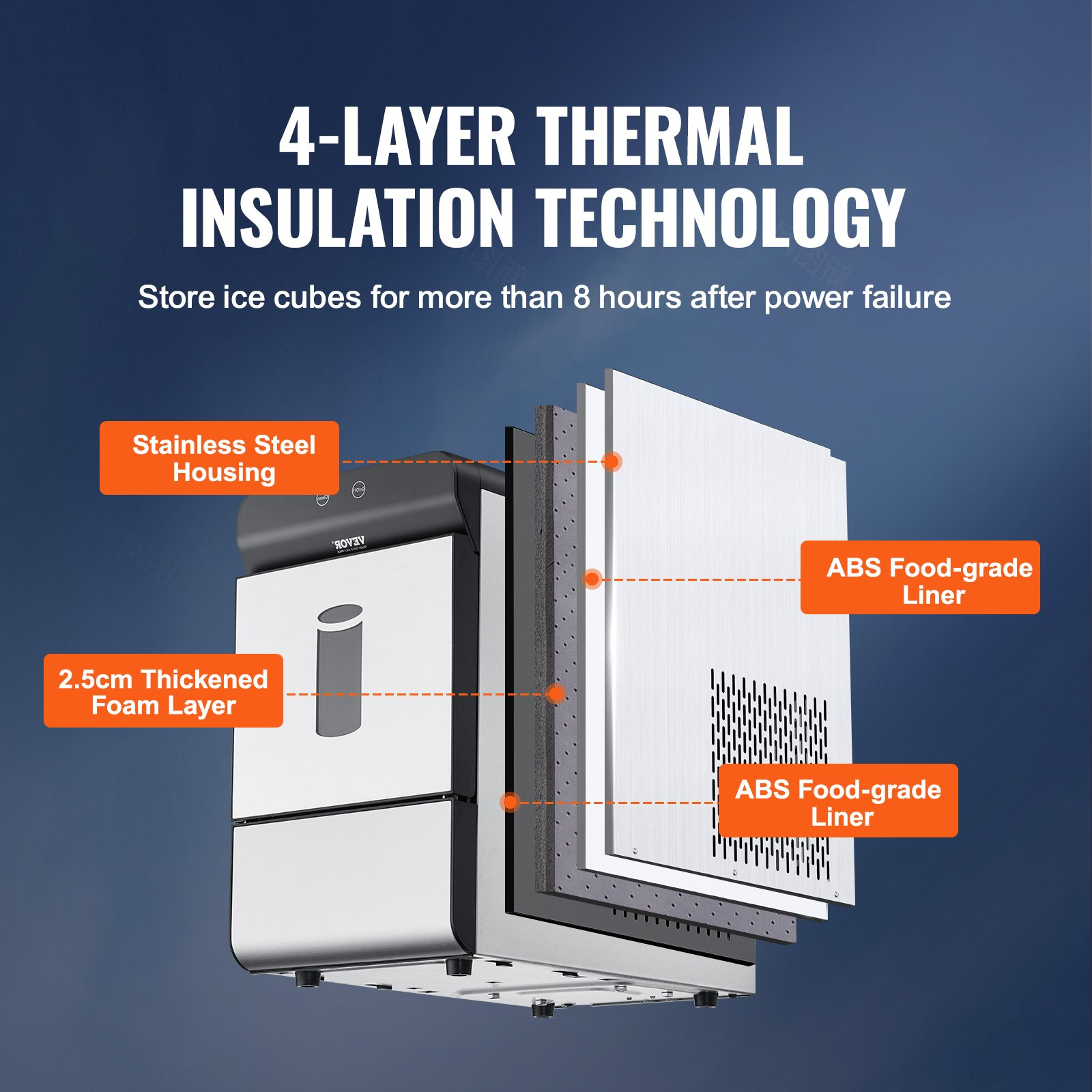 VEVOR Countertop Ice Maker, 37lbs in 24Hrs, Auto Self-Cleaning Portable Ice Maker with Ice Scoop, Basket and Drainpipe, 2 Ways Water Refill Stainless Steel Ice Machine for Home Kitchen Office Party