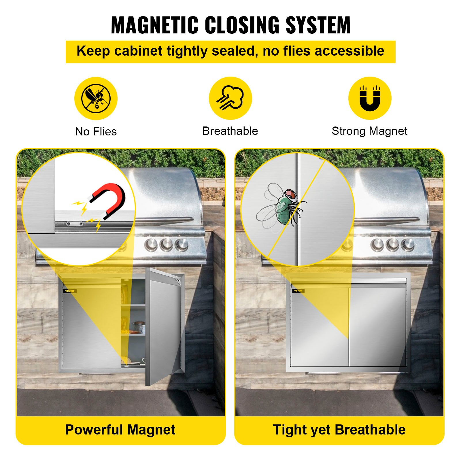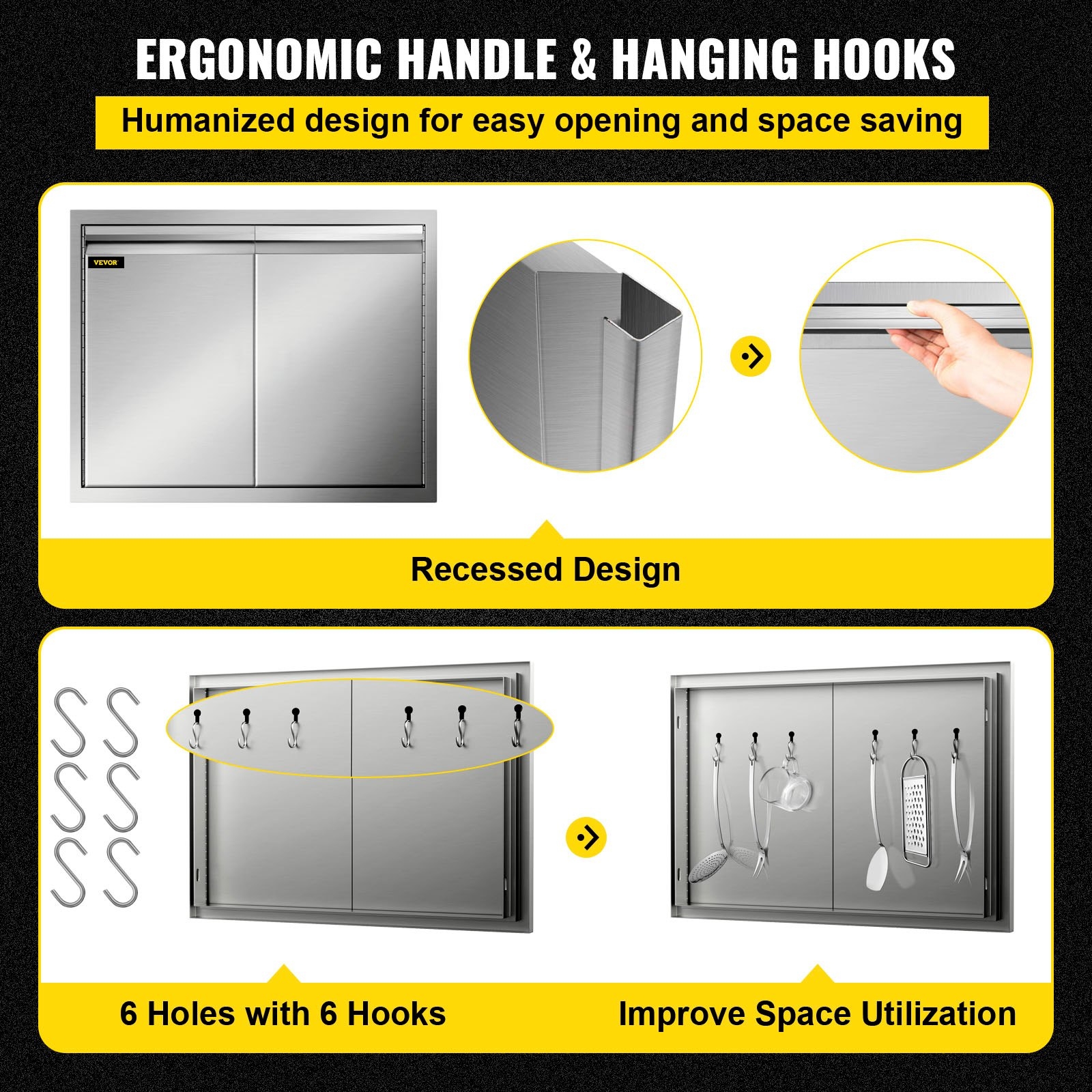 VEVOR Double Access Door, 30''Wx21''H Outdoor Kitchen Door, Double Wall Stainless Steel Outdoor Cabinets with Hooks, Brushed Steel Access Door BBQ Doors, Easy to Install for BBQ Island Grill Station