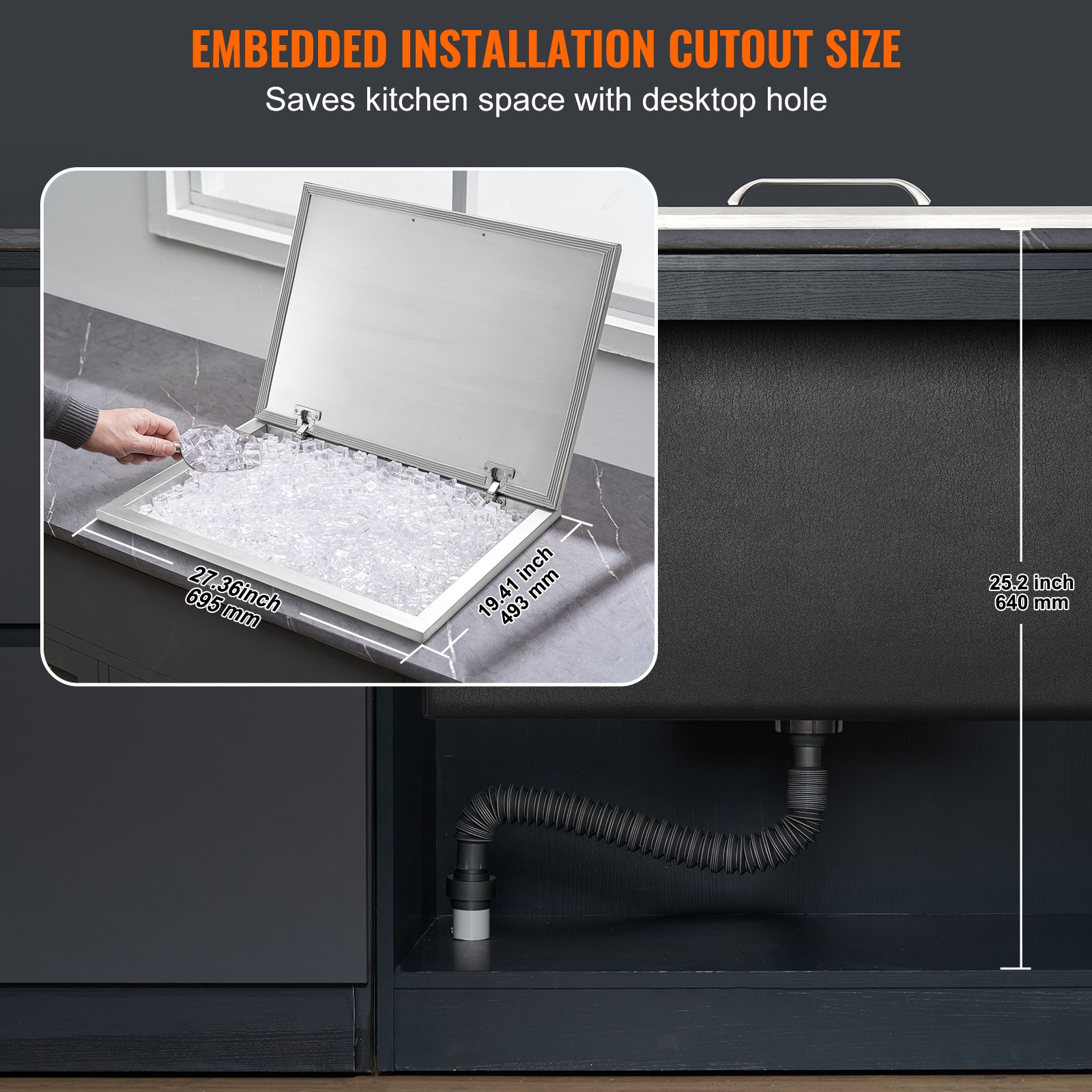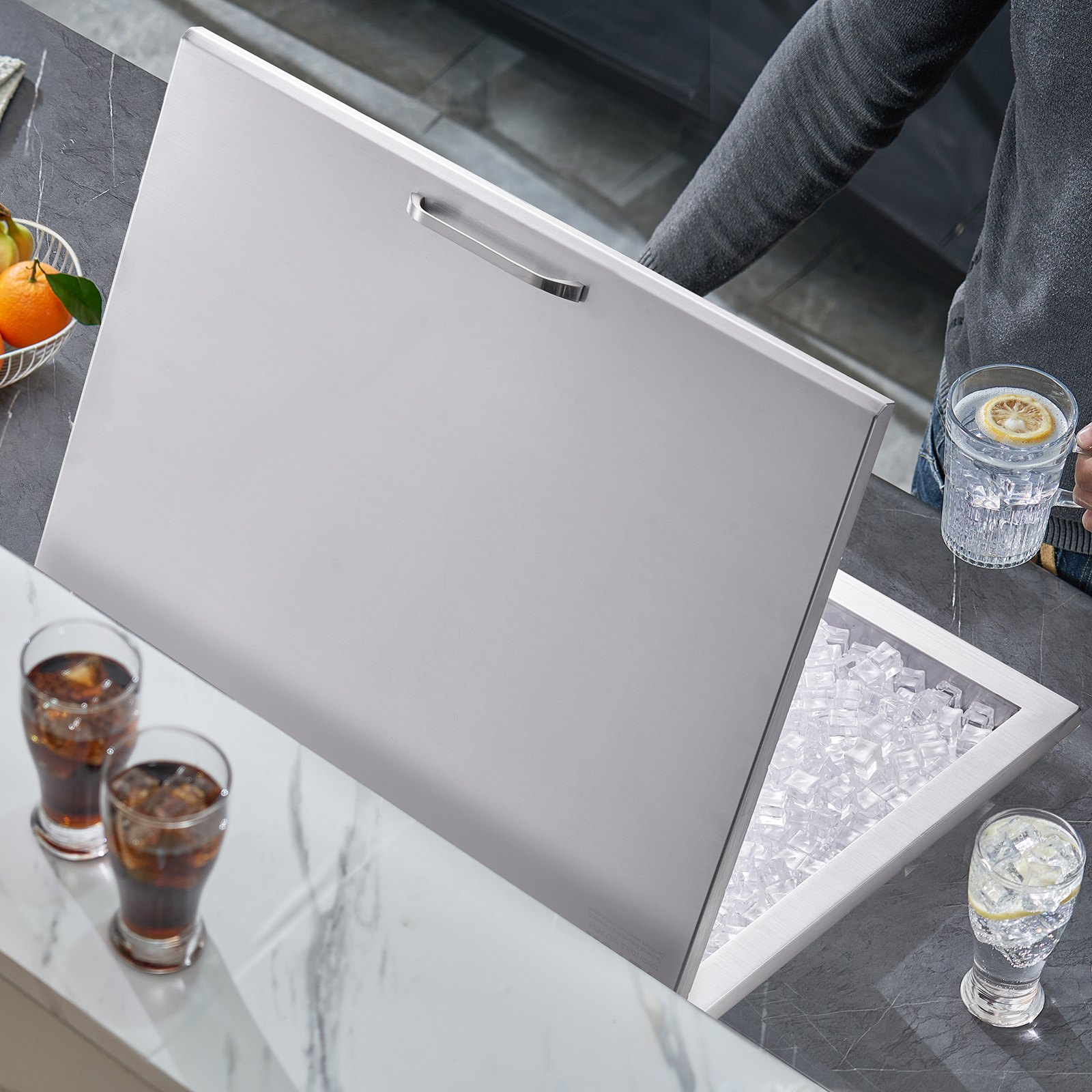 VEVOR Drop in Ice Chest, 28"L x 20"W x 17"H Stainless Steel Ice Cooler, Commercial Ice Bin with Hinged Cover, 40 qt Outdoor Kitchen Ice Bar, Drain-pipe and Drain Plug Included, for Cold Wine Beer
