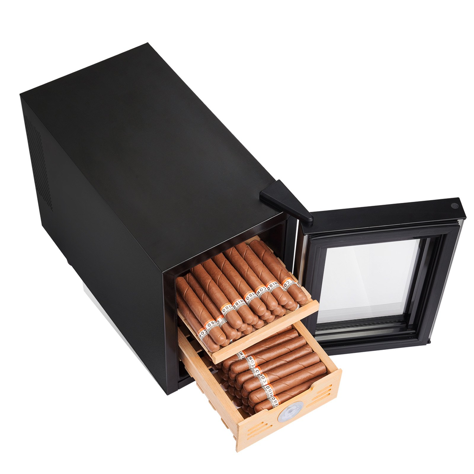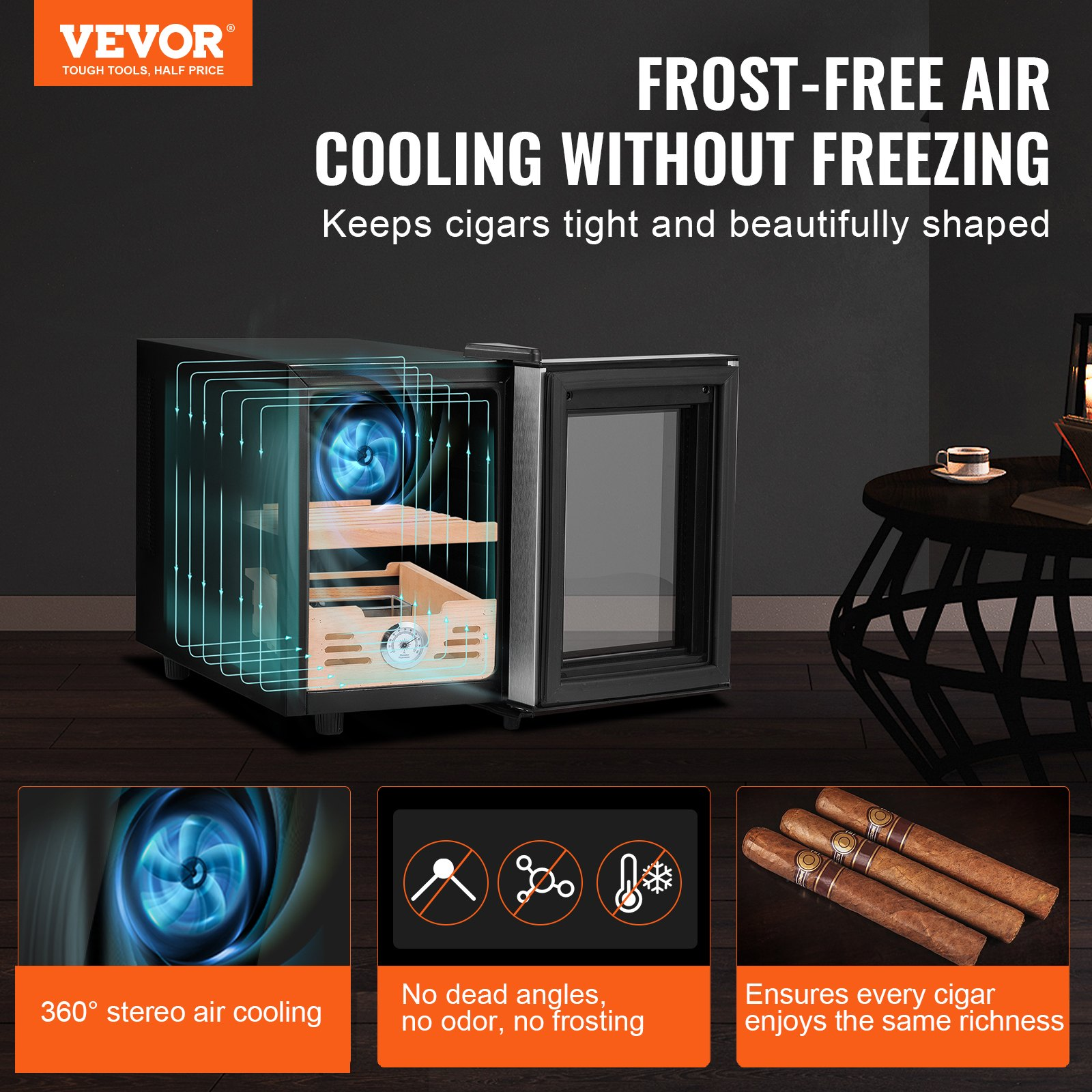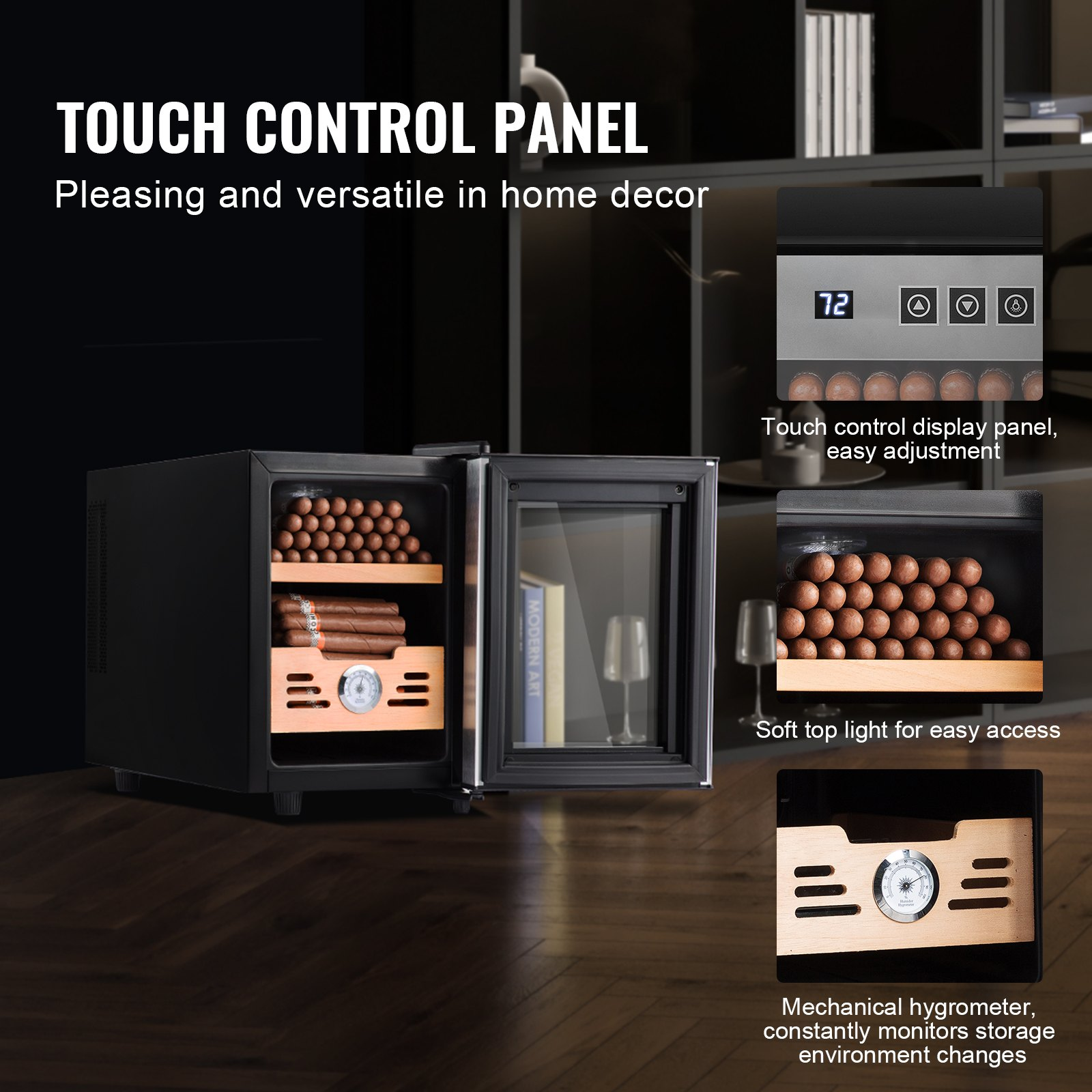 VEVOR Electric Cigar Humidor, 16L Cigar Humidor Cabinet with Heating & Cooling Temp Control System, Spanish Cedar Wood & Tempered Glass & LED Light Cigar Humidor, for Up To 100 Cigars, Gift for Men