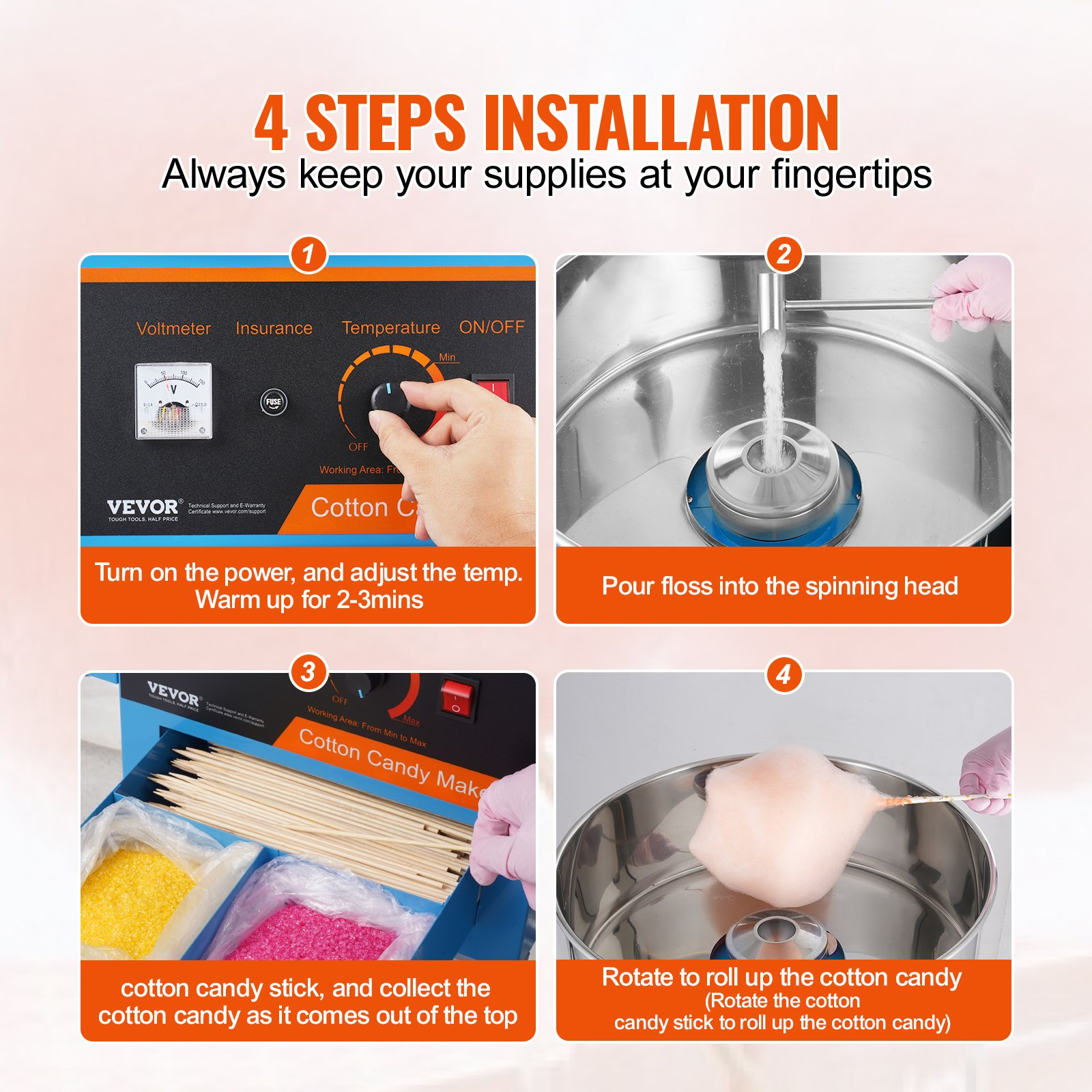 Item Body Weight: 33.1 lbs / 15 kg,Candy Bowl Material: SUS201 Food Grade Stainless Steel,Cover Weight: 2.3 lbs / 1.06 kg,Item Size: 20.4x32.3x39.4 inch / 518x820x1000 mm,Candy Bowl Capacity: 3.5 Ounces ±5%,Color: Blue,Item Model Number: MHTJJPHC01,Rated Power: 1000W,Cotton Candy Yield: 6 pcs/min,Temp Range: 244.9x439.2°F / 118.3-226.2℃