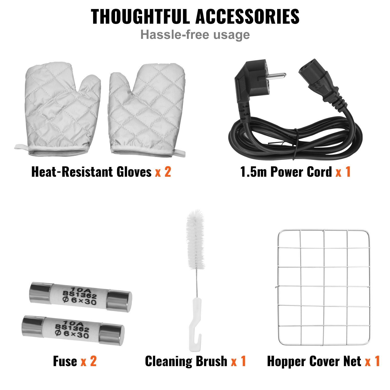 Temperature Control: 0-300℃ / 32 - 572 ℉,Efficiency: 3.3lbs(1.5kg) /h,Item Model Number: KYL-380K,Net Weight: 10.75 kg / 23.7 lbs,Power: 850W,Main Material: SUS304