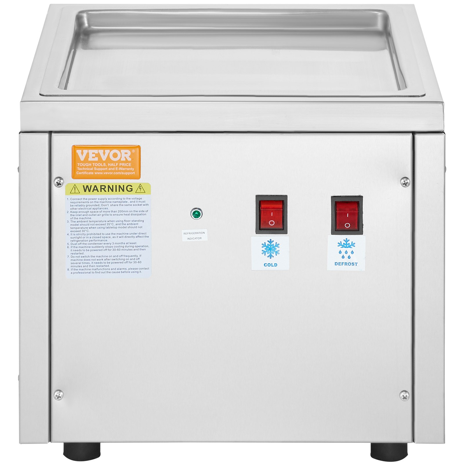VEVOR Fried Ice Cream Roll Machine, 11" x 9.5" Stir-Fried Ice Cream Pan, Stainless Steel Rolled Ice Cream Maker with Compressor and 2 Scrapers, for Making Ice Cream, Frozen Yogurt, Ice Cream Rolls