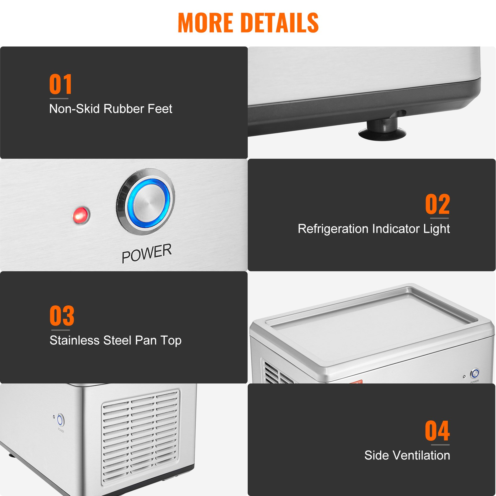 VEVOR Fried Ice Cream Roll Machine, 19.3" x 14.9" Stir-Fried Ice Cream Pan, Stainless Steel Rolled Ice Cream Maker with Compressor and 2 Scrapers, for Making Ice Cream, Frozen Yogurt, Ice Cream Rolls