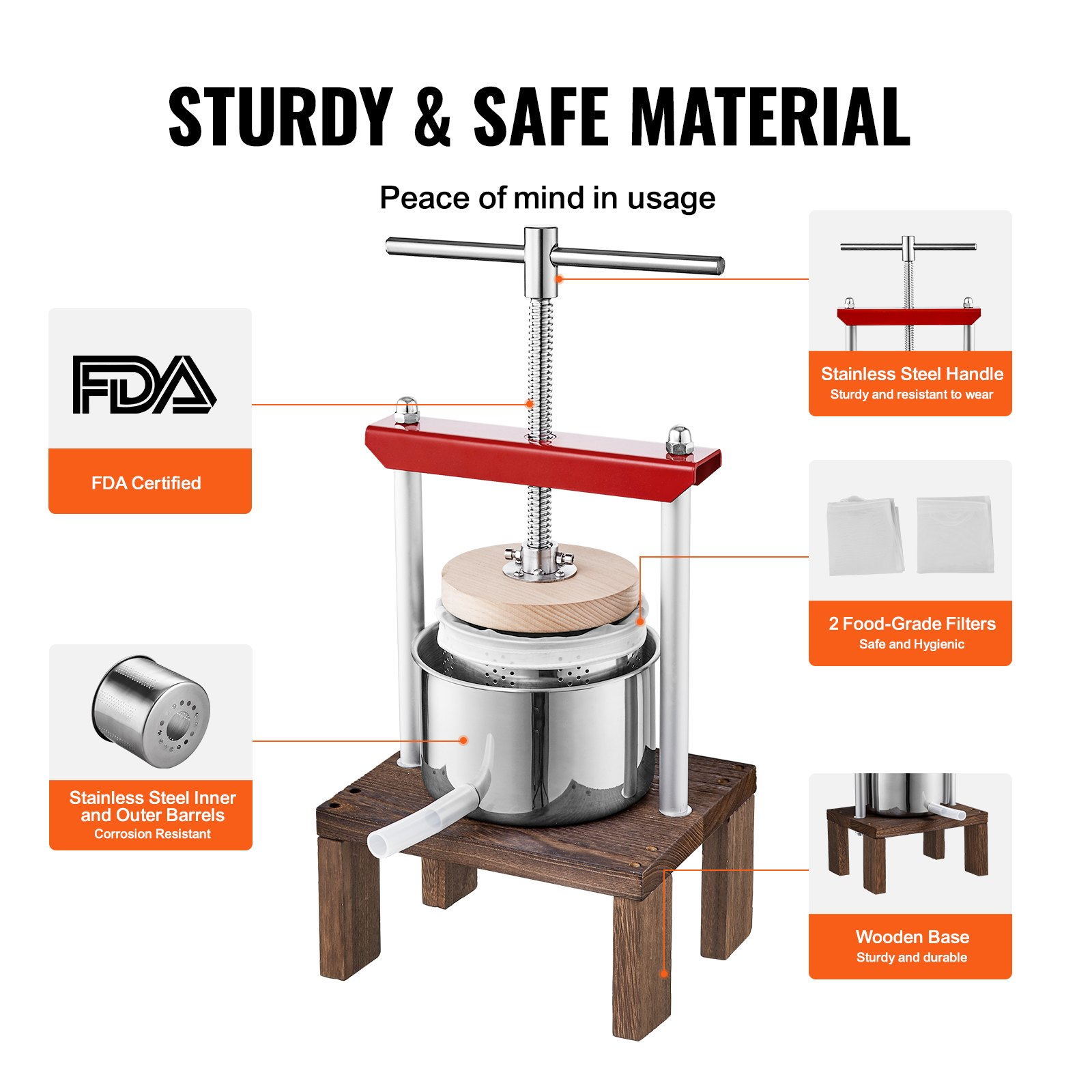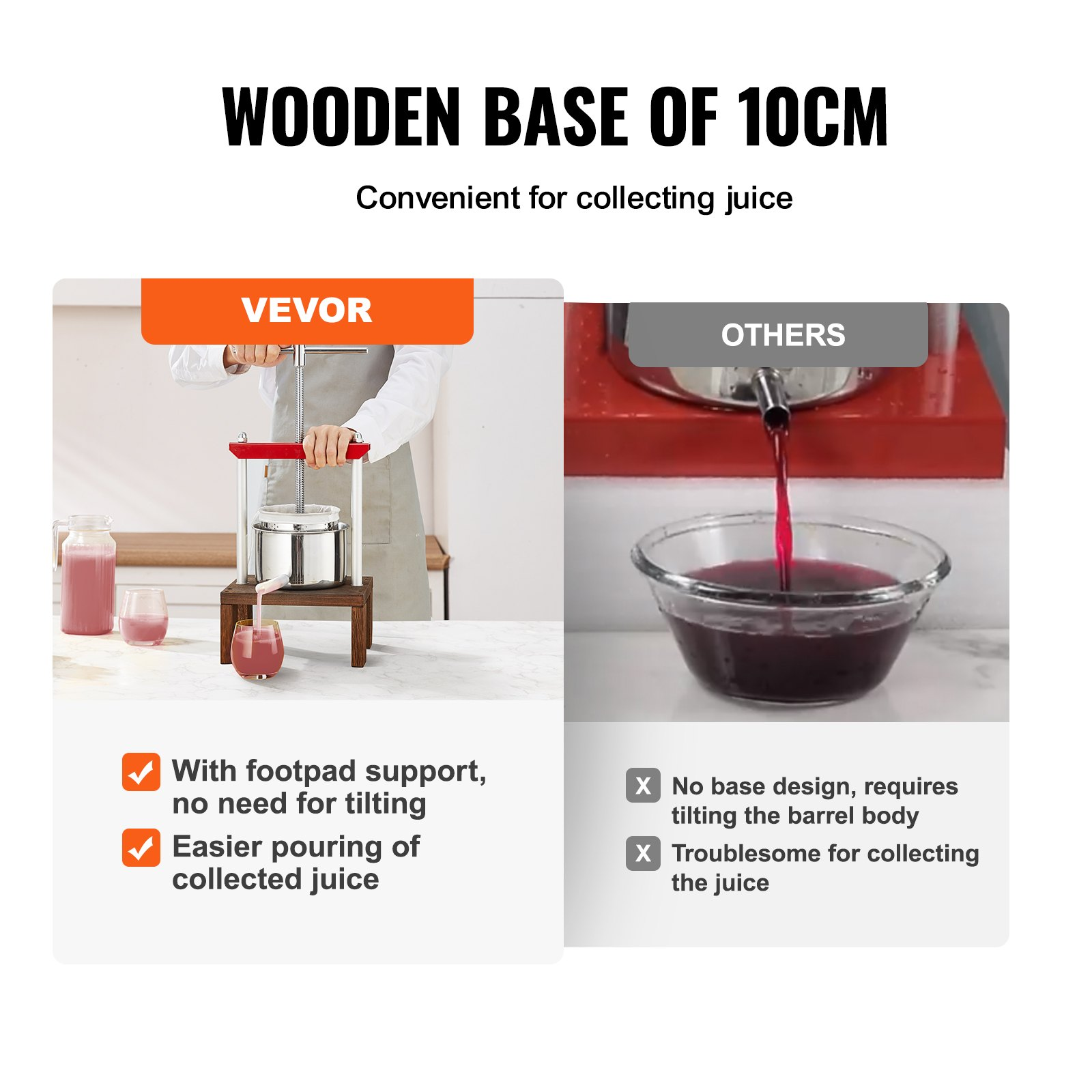 VEVOR Fruit Wine Press, 0.53 Gallon/2L, 2 Stainless Steel Barrels, Manual Juice Maker, Cider Apple Grape Tincture Vegetables Honey Olive Oil Making Press with T-Handle & Stable Base for Kitchen, Home