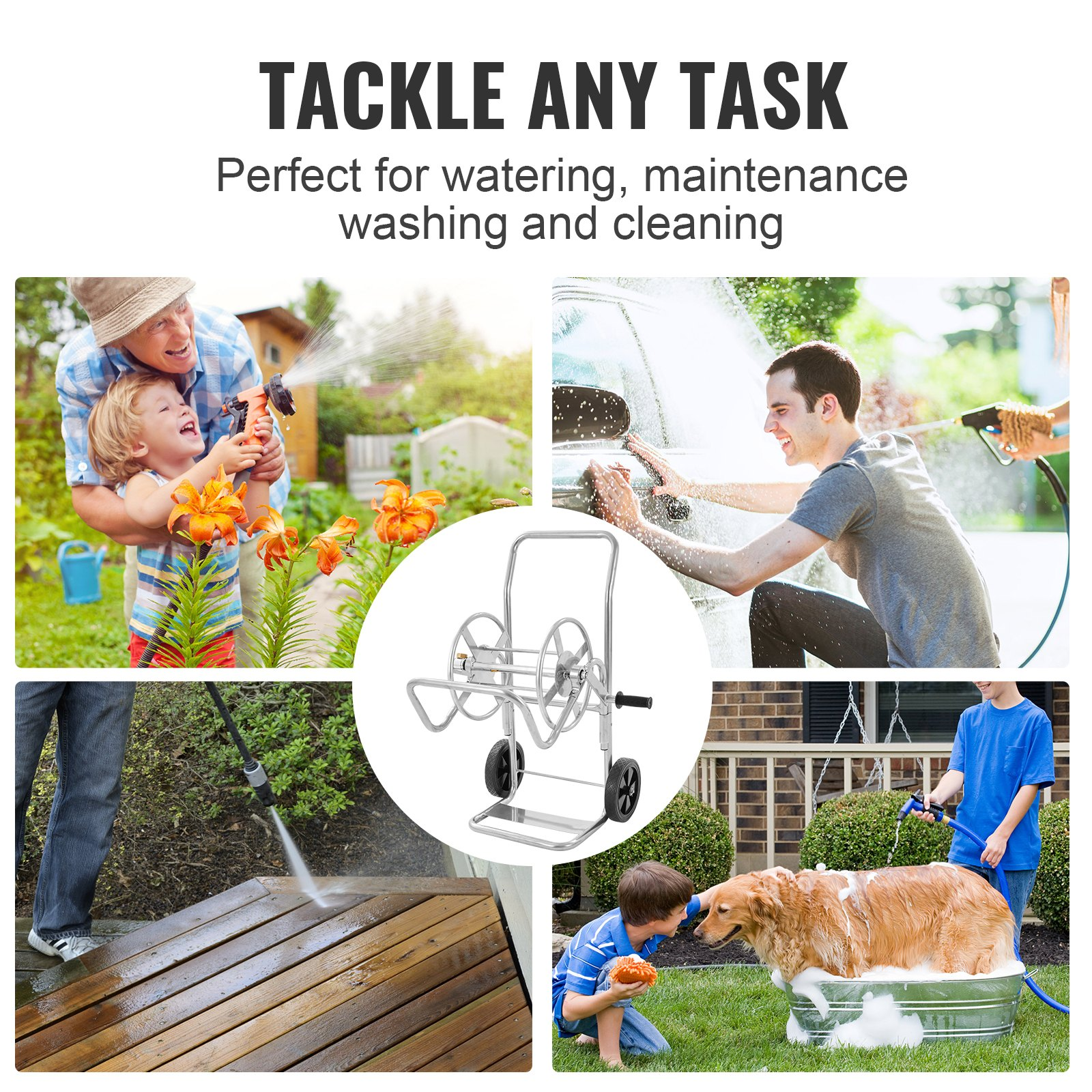 VEVOR Hose Reel Cart, Hold Up to 200 ft of 5/8’’ Hose (Hose Not Included), Garden Water Hose Carts Mobile Tools with Wheels, Heavy Duty Powder-coated Steel Outdoor Planting for Garden, Yard, Lawn