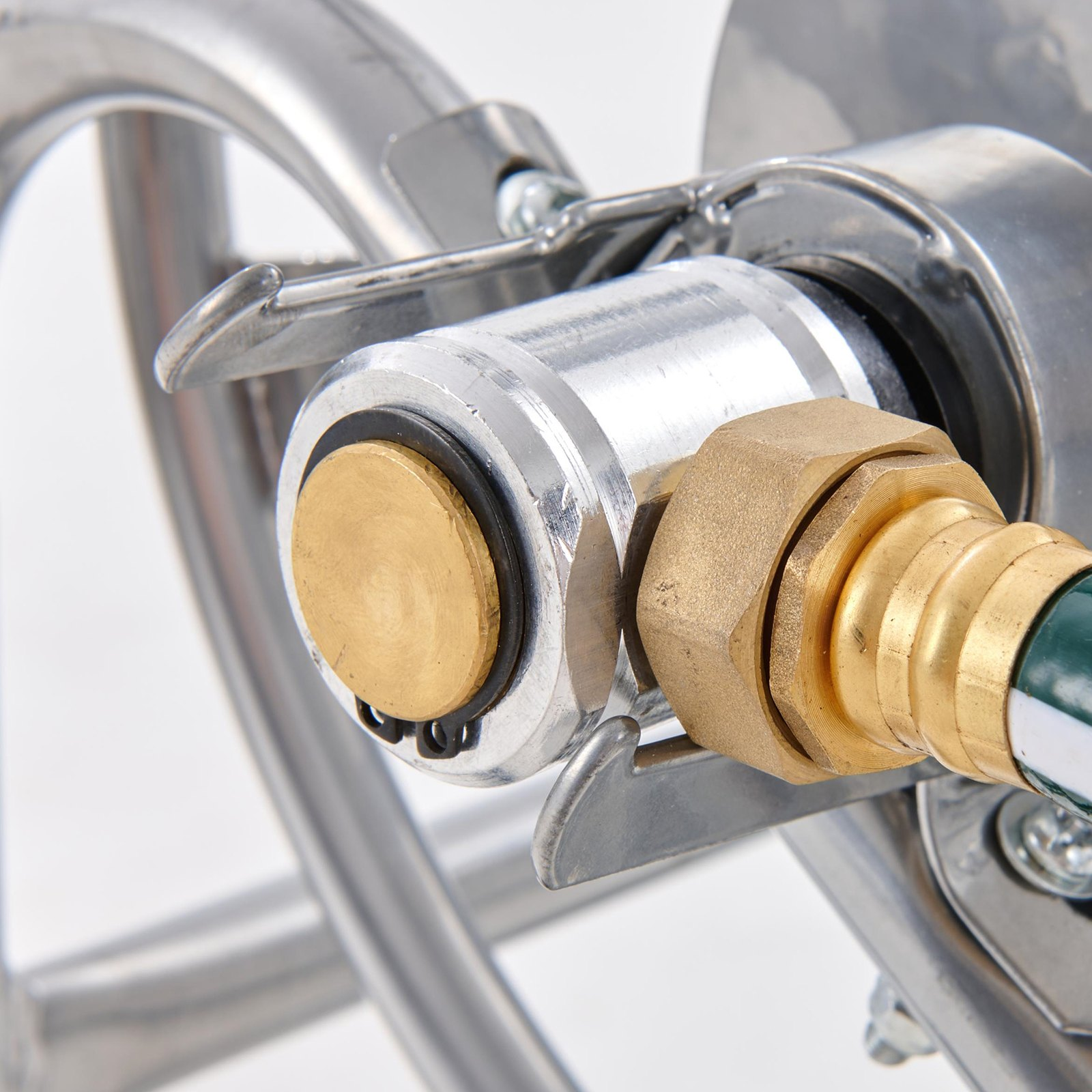 Wheel Dimensions: 8'' / 205 mm,Connection Material: Brass,Item Model Number: GT0703-1,Material: Powder-coated Steel,Item Dimensions: 25.6'' x 19.7'' x 35'' / 650 x 500 x 890 mm,Water Hose Capacity: 5/8'' & 200 ft (1.5 cm & 61 m),Wheel Material: Solid PVC,Item Weight: 18.34 lbs / 8.32 kg
