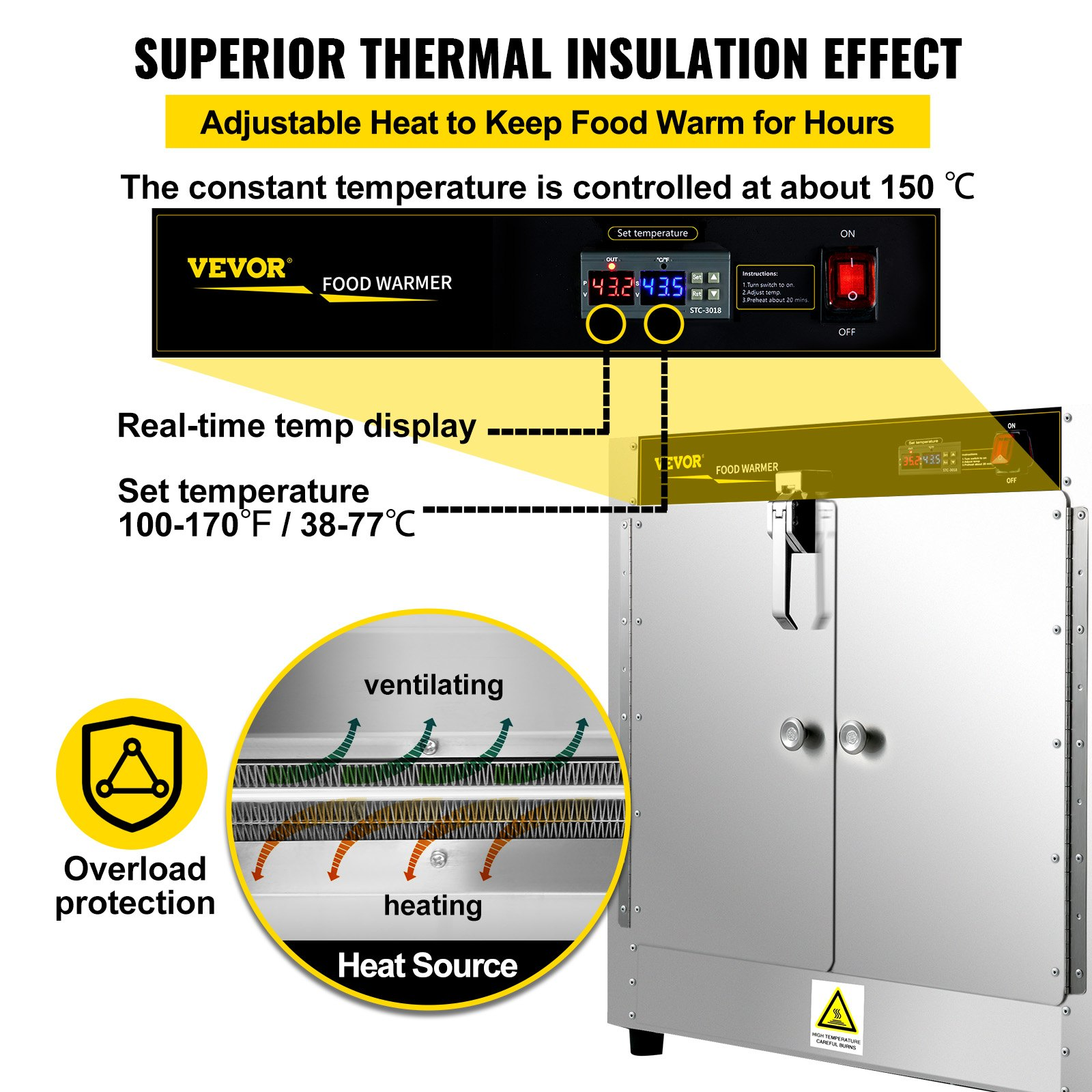 VEVOR Hot Box Food Warmer, 25"x15"x24" Concession Warmer with Water Tray, Four Disposable Catering Pans, Countertop Pizza, Patty, Pastry, Empanada, Concession Hot Food Hold Tested to UL Standards