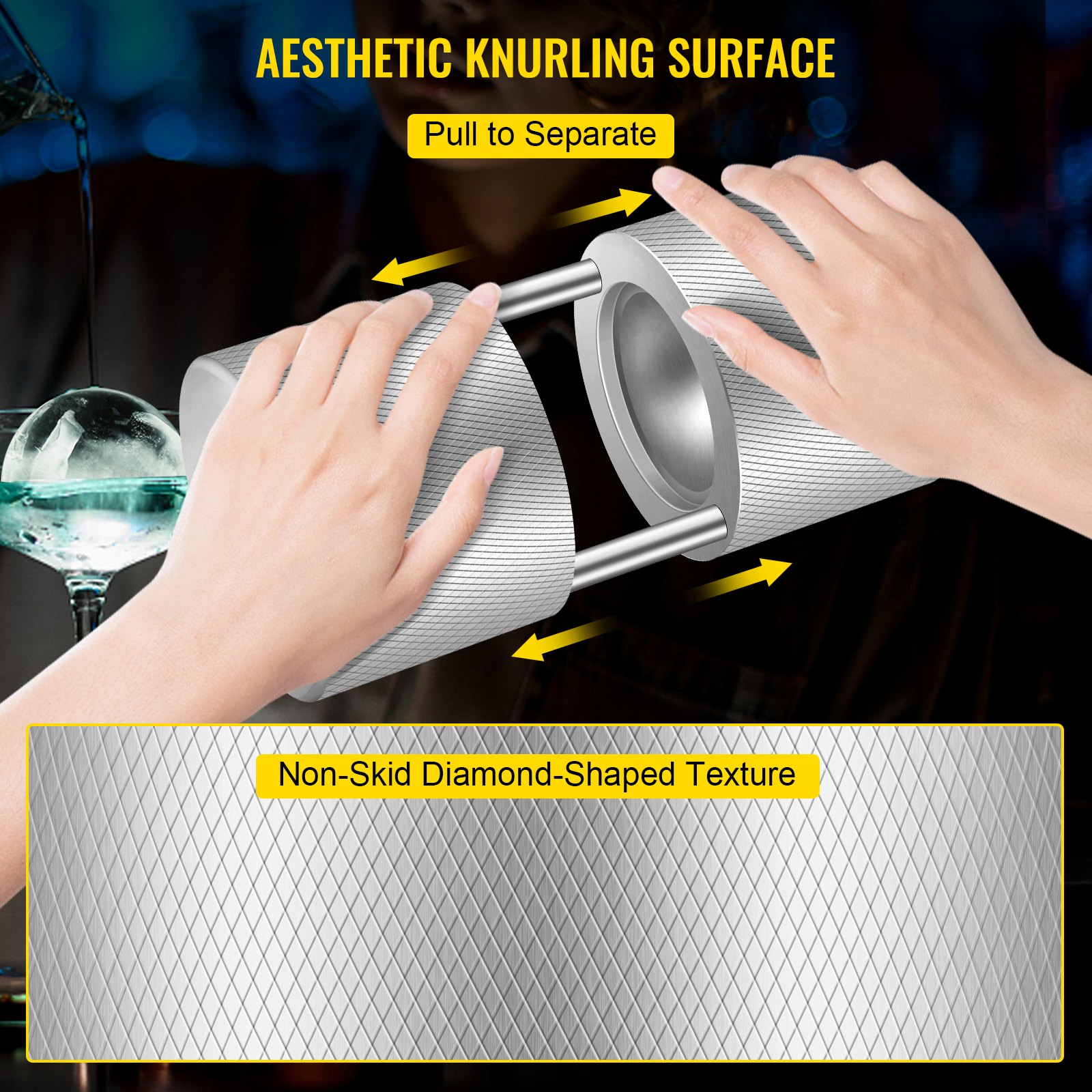 VEVOR Ice Ball Press, 2.4" Ice Ball Maker, Aircraft Al Alloy Ice Ball Press Kit for 60mm Ice Sphere, Ice Press w/Stainless-Steel Clamp Plate, Silver Ice Ball Press Maker for Whiskey, Bourbon, Scotch