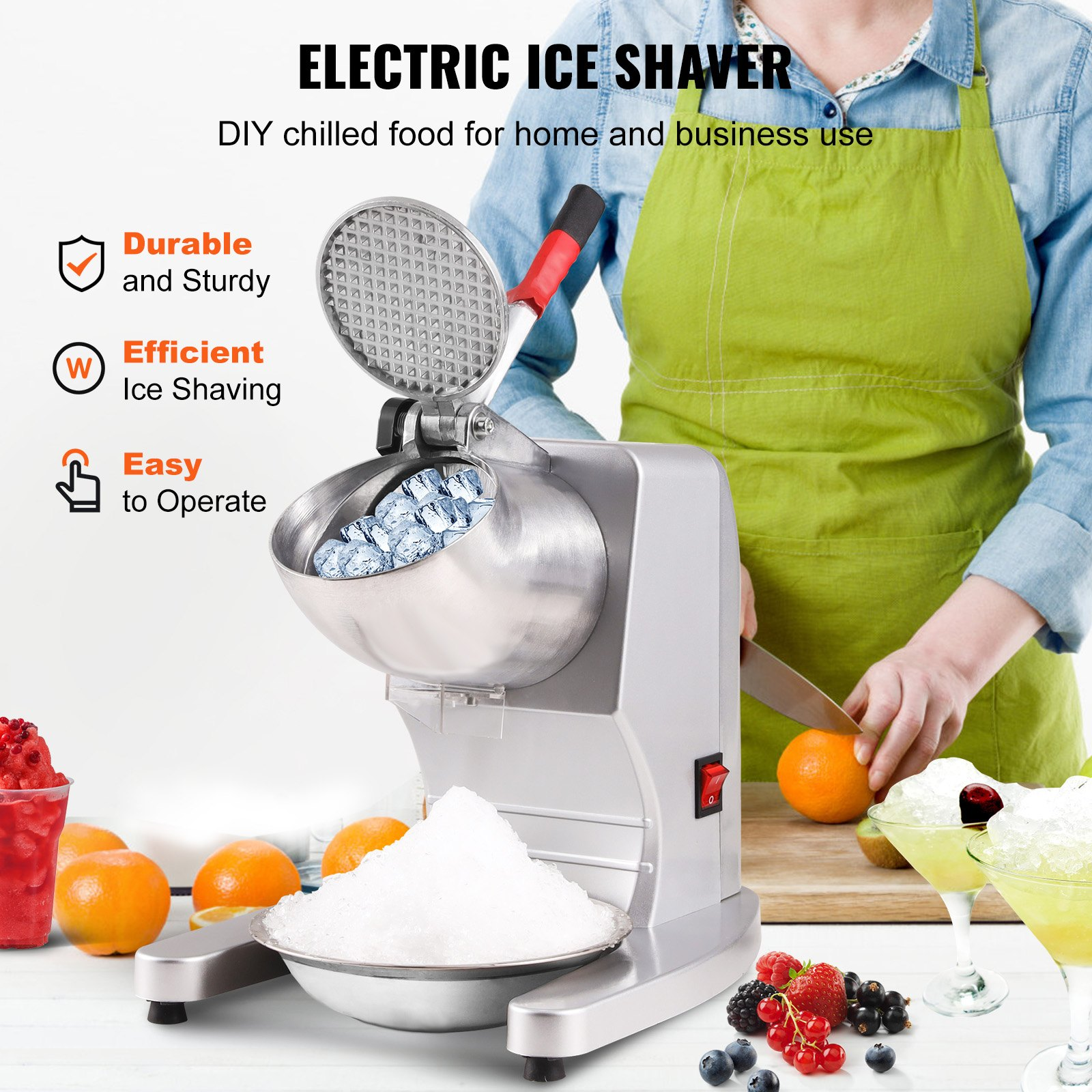 VEVOR Ice Crushers Machine, 220lbs Per Hour Electric Snow Cone Maker with 4 Blades, Stainless Steel Shaved Ice Machine with Cover and Bowl, 300W Ice Shaver Machine for Home and Commercial Use, Silver