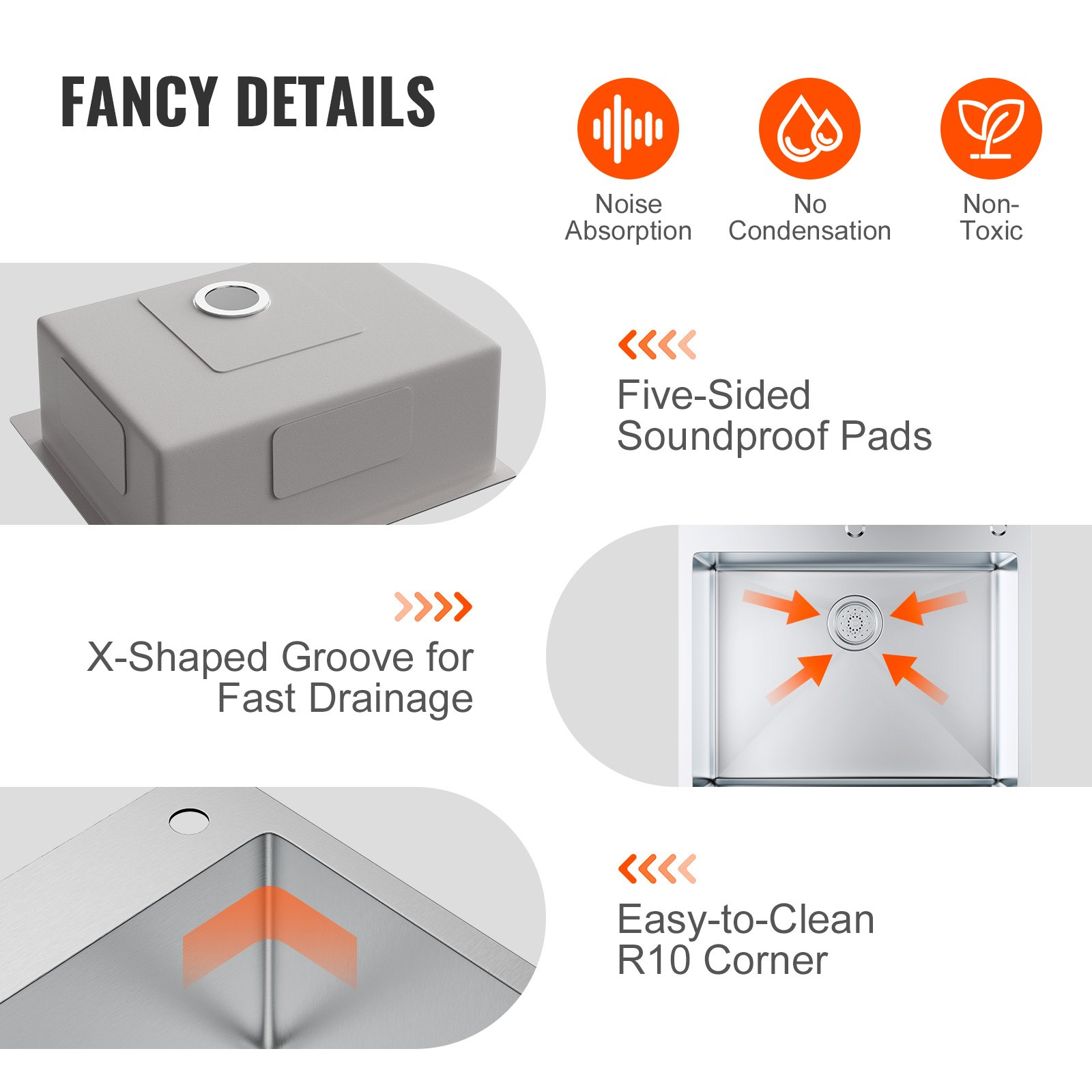 VEVOR Kitchen Sink, 304 Stainless Steel Drop-In Sinks, Top Mount Single Bowl Basin with Accessories(Pack of 2), Household Dishwasher Sinks for Workstation, RV, Prep Kitchen, and Bar Sink, 25 inch