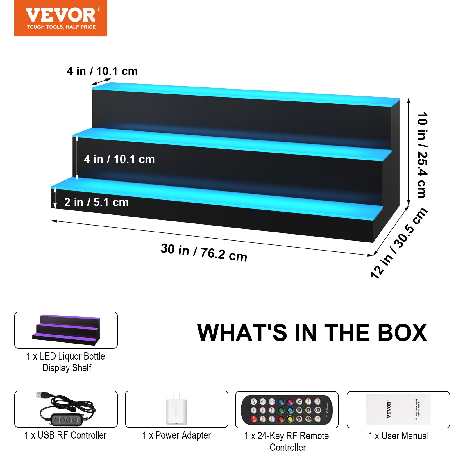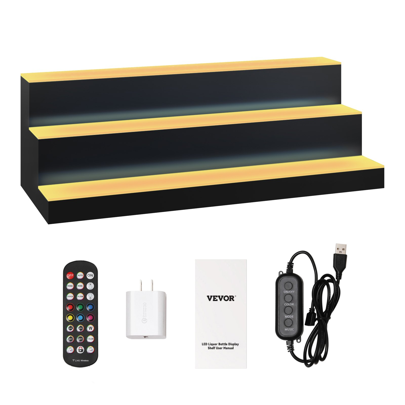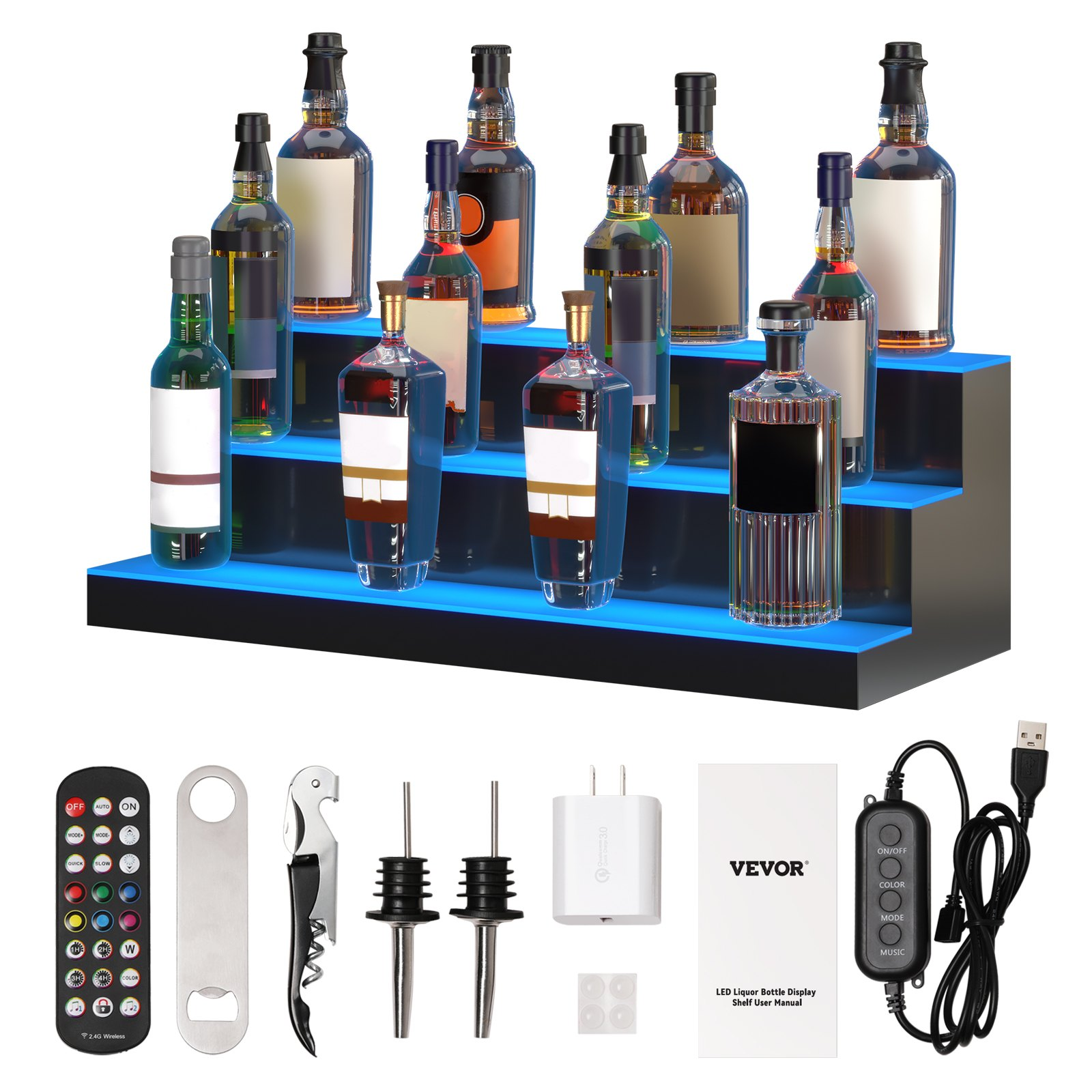 VEVOR LED Lighted Liquor Bottle Display Bar Shelf RF & App Control 30" 3-Step