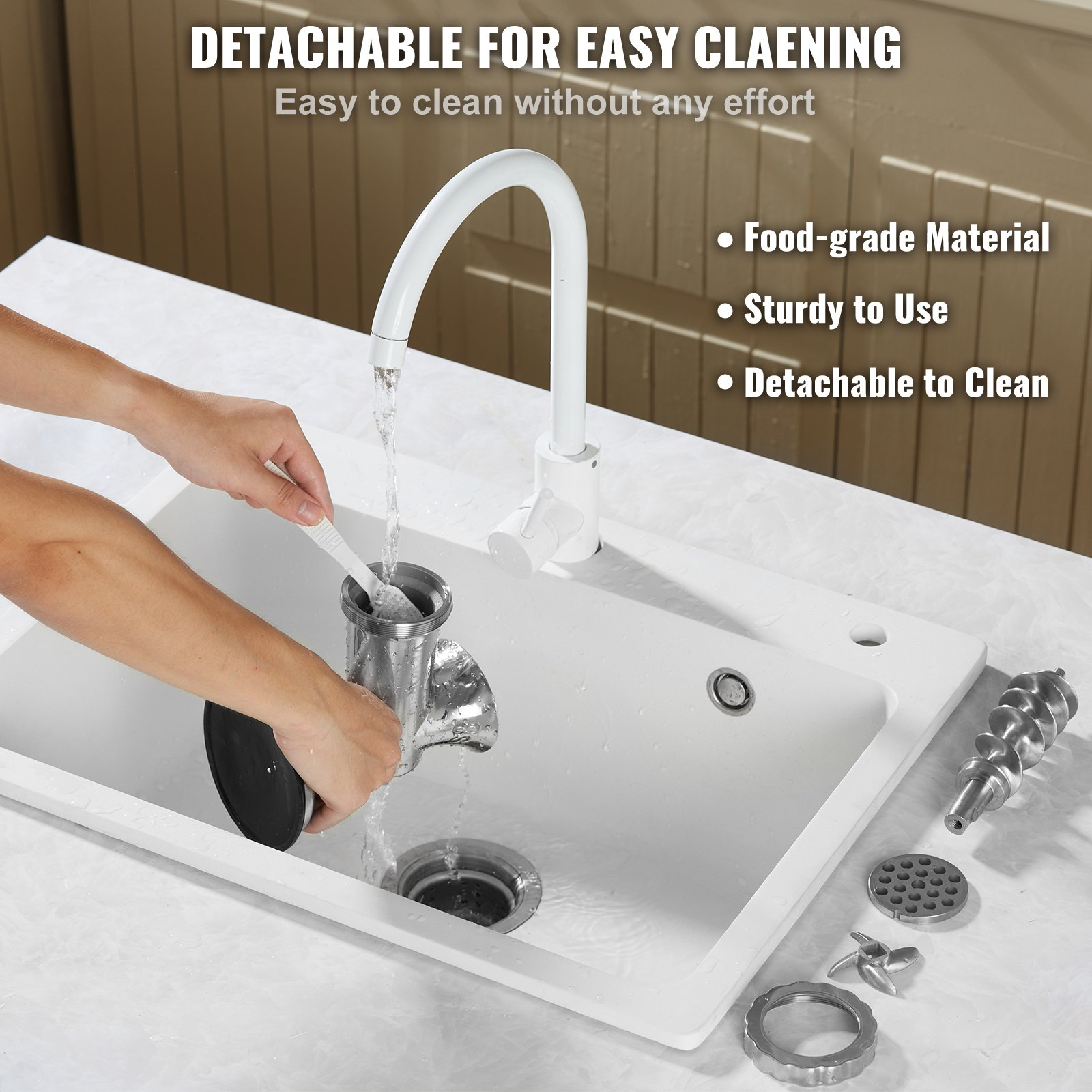 VEVOR Manual Meat Grinder, 304 Stainless Steel Hand Meat Grinder with Suction Cup + Steel Table Clamp, Meat Mincer Sausage Maker & 2 Cutting Plates, Sausage Tube, Grinding Head for Beef Pepper Cookie