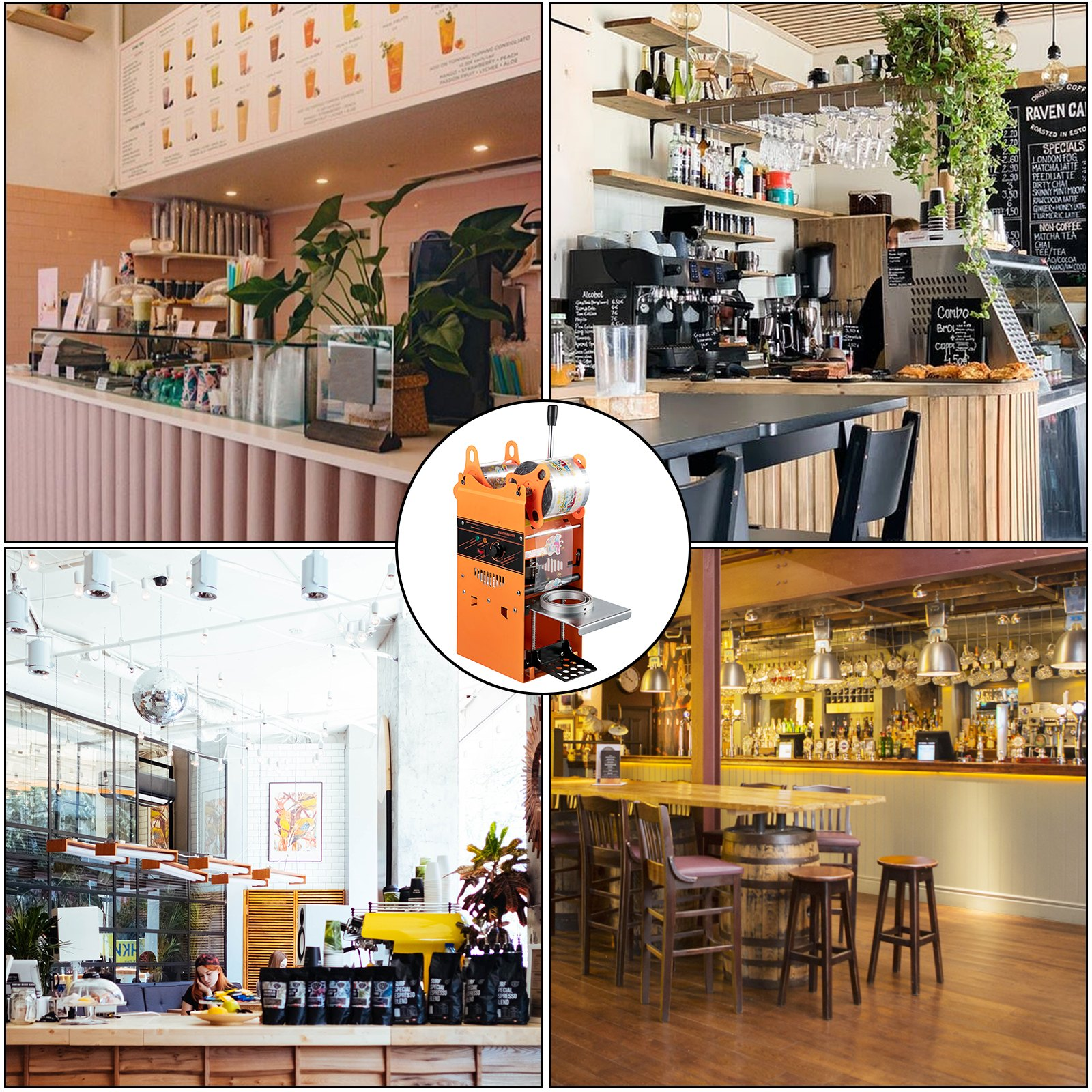 VEVOR Manual Tea Cup Sealer Machine, 300-500 Cup/h Manual Boba Tea Sealer Machine, Orange, 90/95mm Cup Diameter Cup Sealing Machine with Heating Technology for Bubble Milk Tea