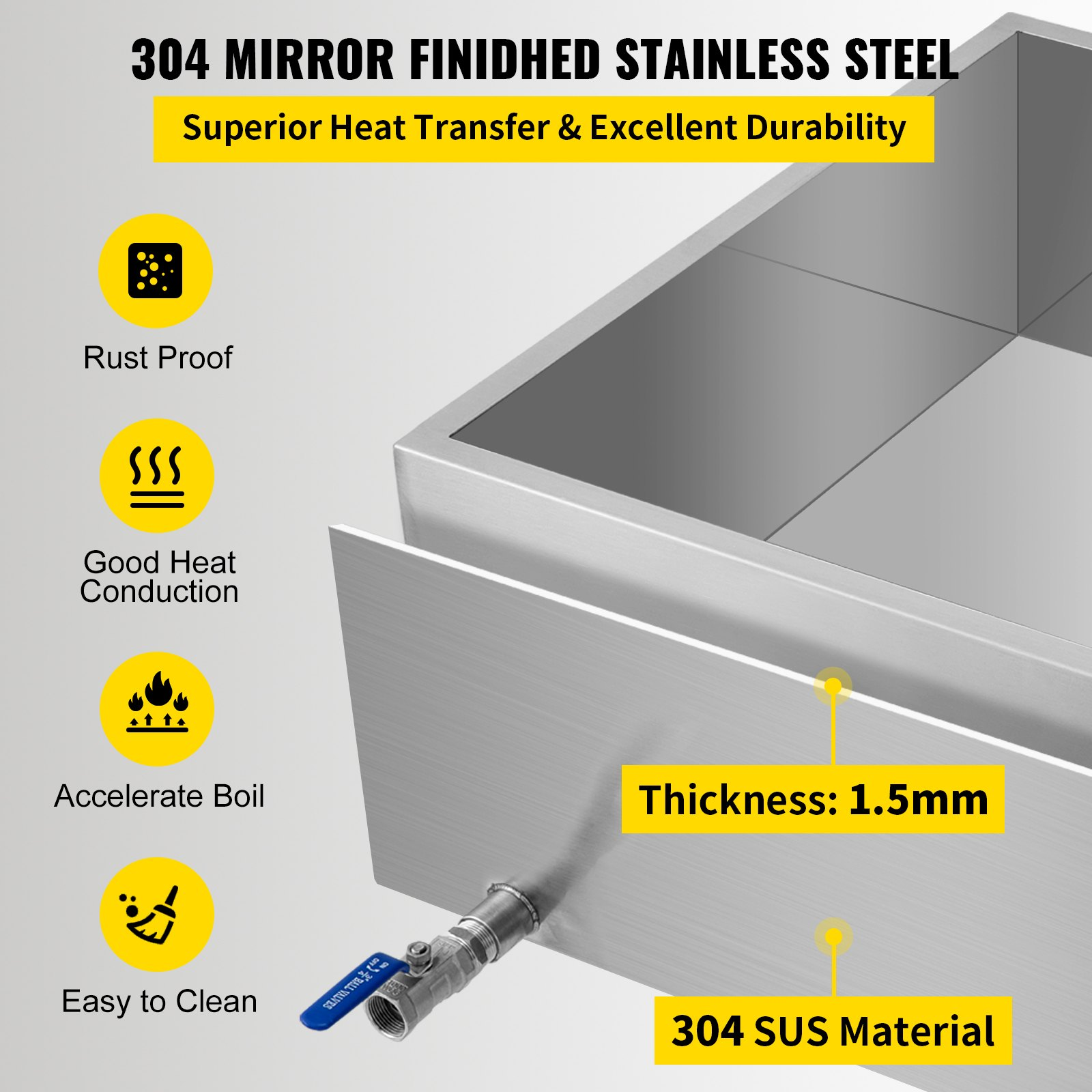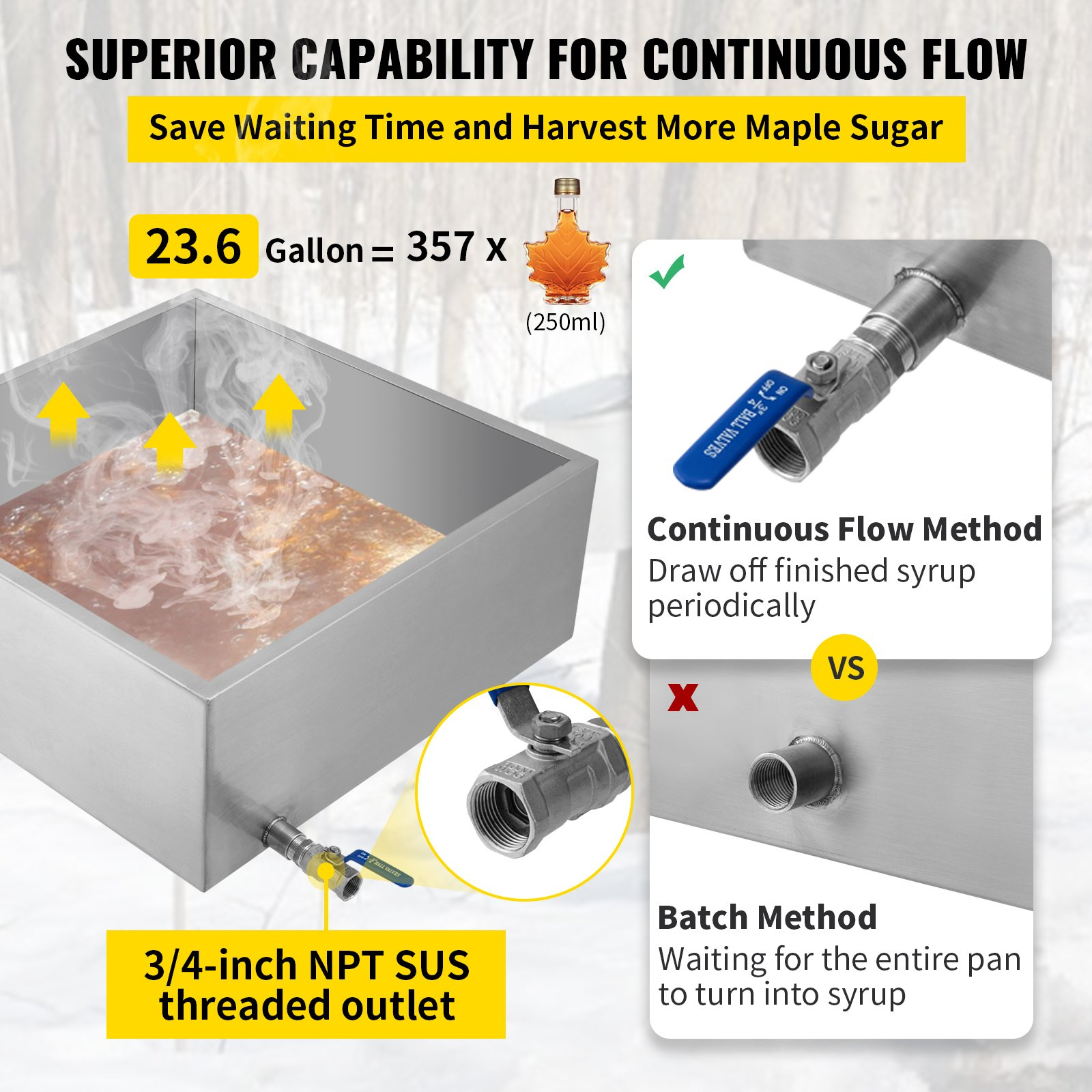 VEVOR Maple Syrup Evaporator Pan 24x24x9.5 Inch Stainless Steel Maple Syrup Boiling Pan with Valve