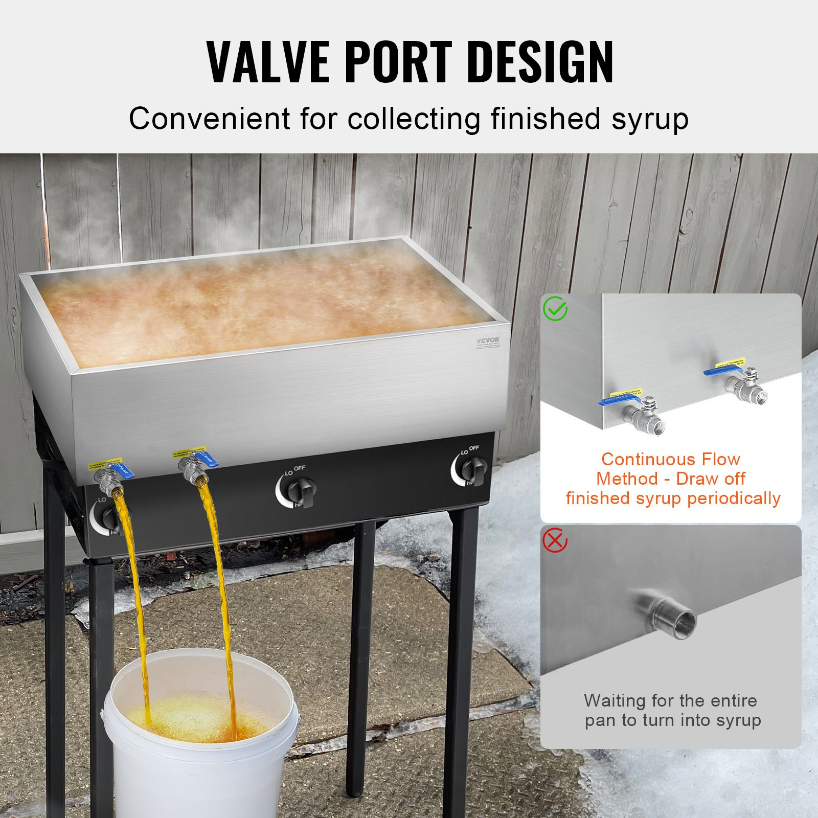 VEVOR Maple Syrup Evaporator Pan 304 Stainless Steel with 2 Valves Home Outdoor