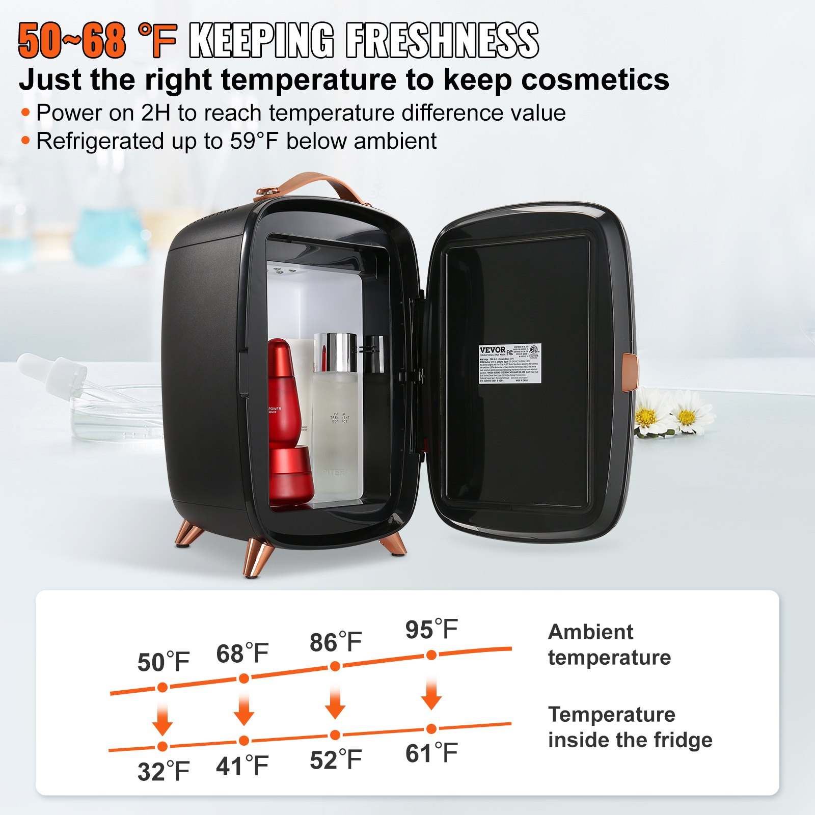 Vevor Mini Fridge, 6L Skincare Fridge with LED light and HD Mirror, AC/DC Makeup Fridges for Skin Care, Cosmetic Storage, Chill Face Mask Drink, Small Refrigerator for Bedroom Dorm Desktop, Black