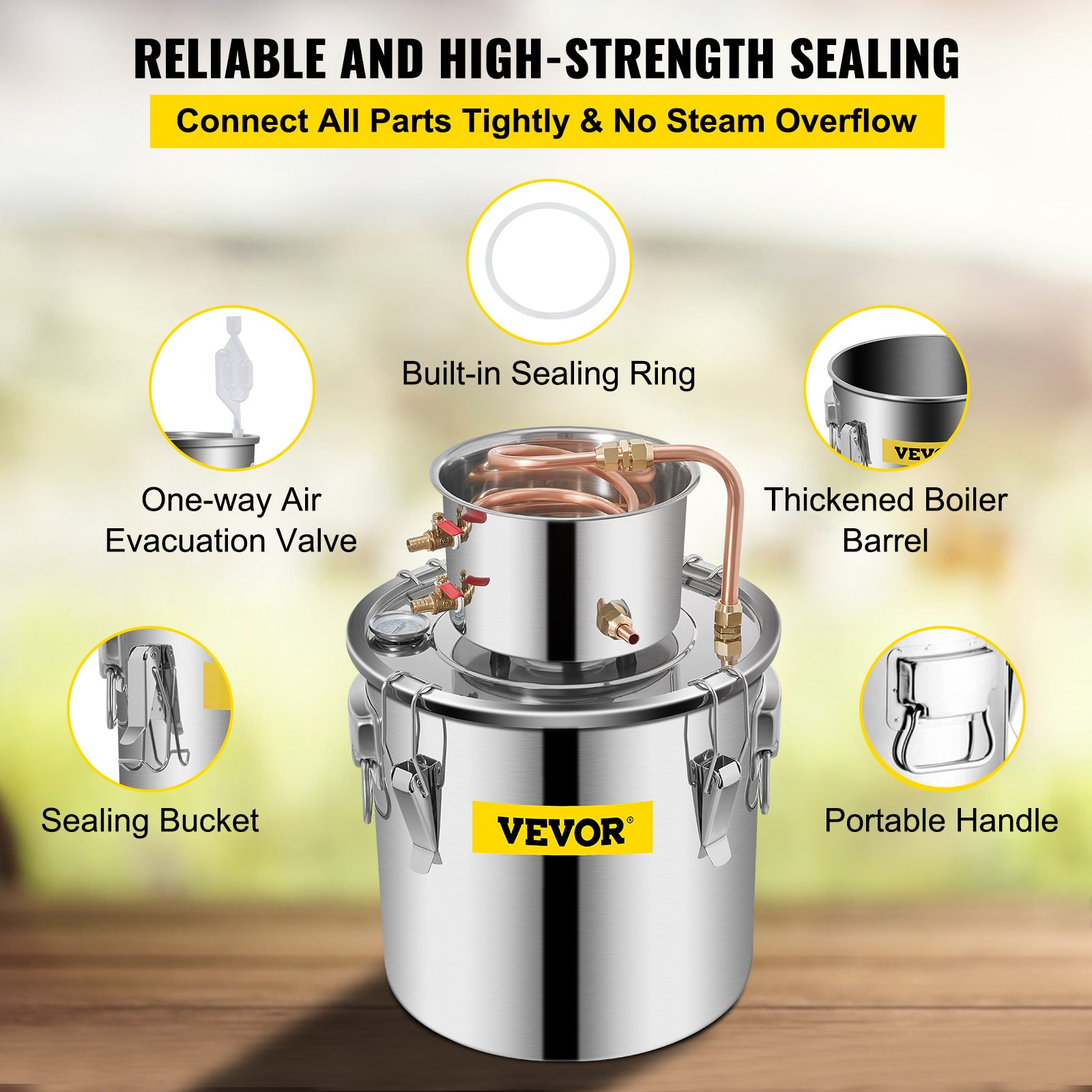 VEVOR Moonshine Still 5 Gal 21L, Distillery Kit with Circulating Pump, Alcohol Still Copper Tube, Whiskey Distilling Kit w/Build-In Thermometer, Whiskey Making Kit for DIY Alcohol, Stainless Steel