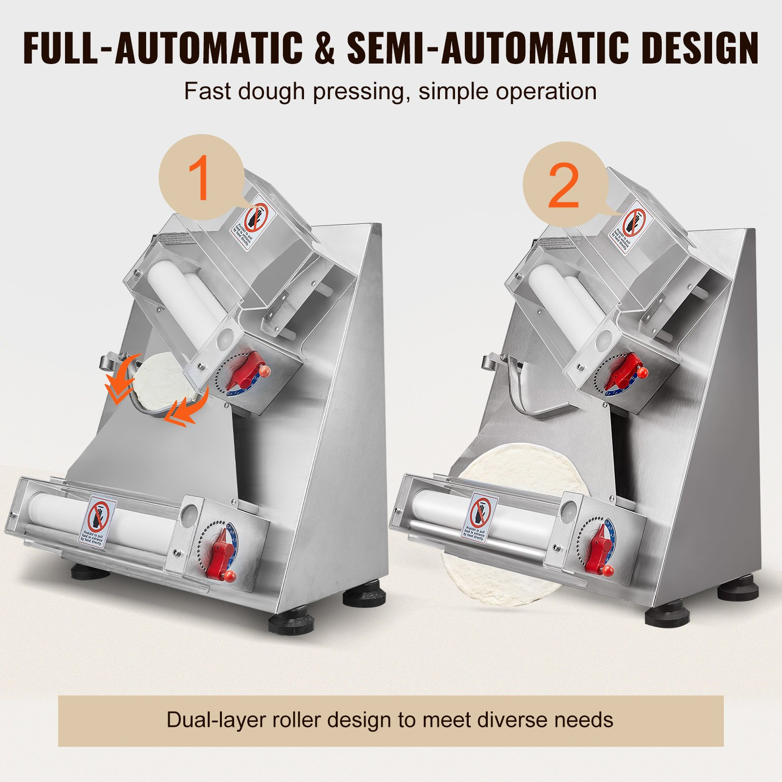 VEVOR Pizza Dough Roller Sheeter, 3-12 Inch Automatic Commercial Pizza Press, 370W Electric 260 Per Hour Dough Roller, Stainless Steel Adjustable Thickness Dough Machine, for Pasta Maker Equipment