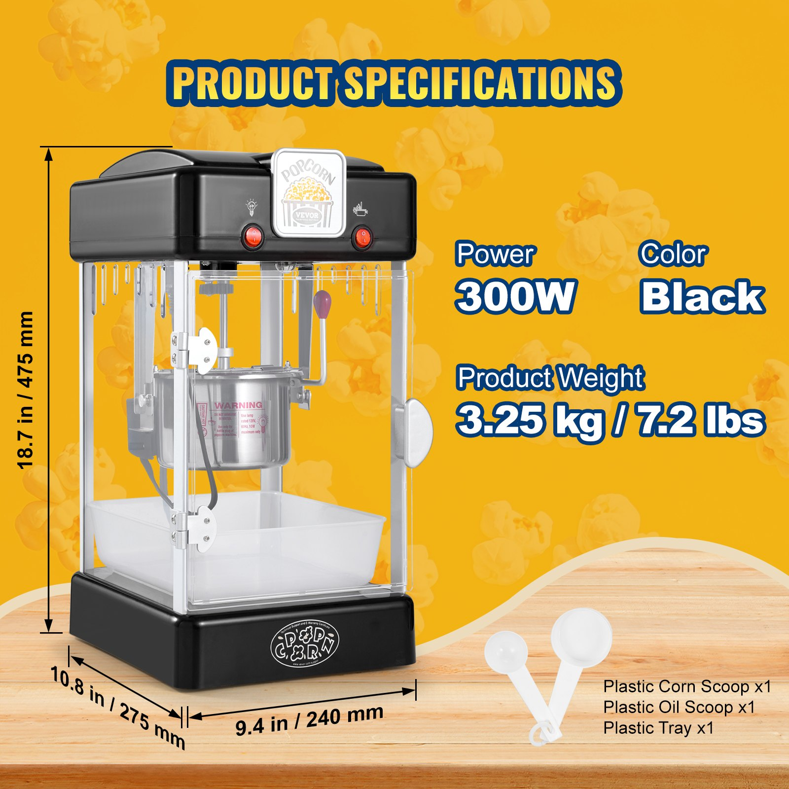 VEVOR Popcorn Popper Machine Tabletop Popcorn Maker 300W 2.5 Oz Black