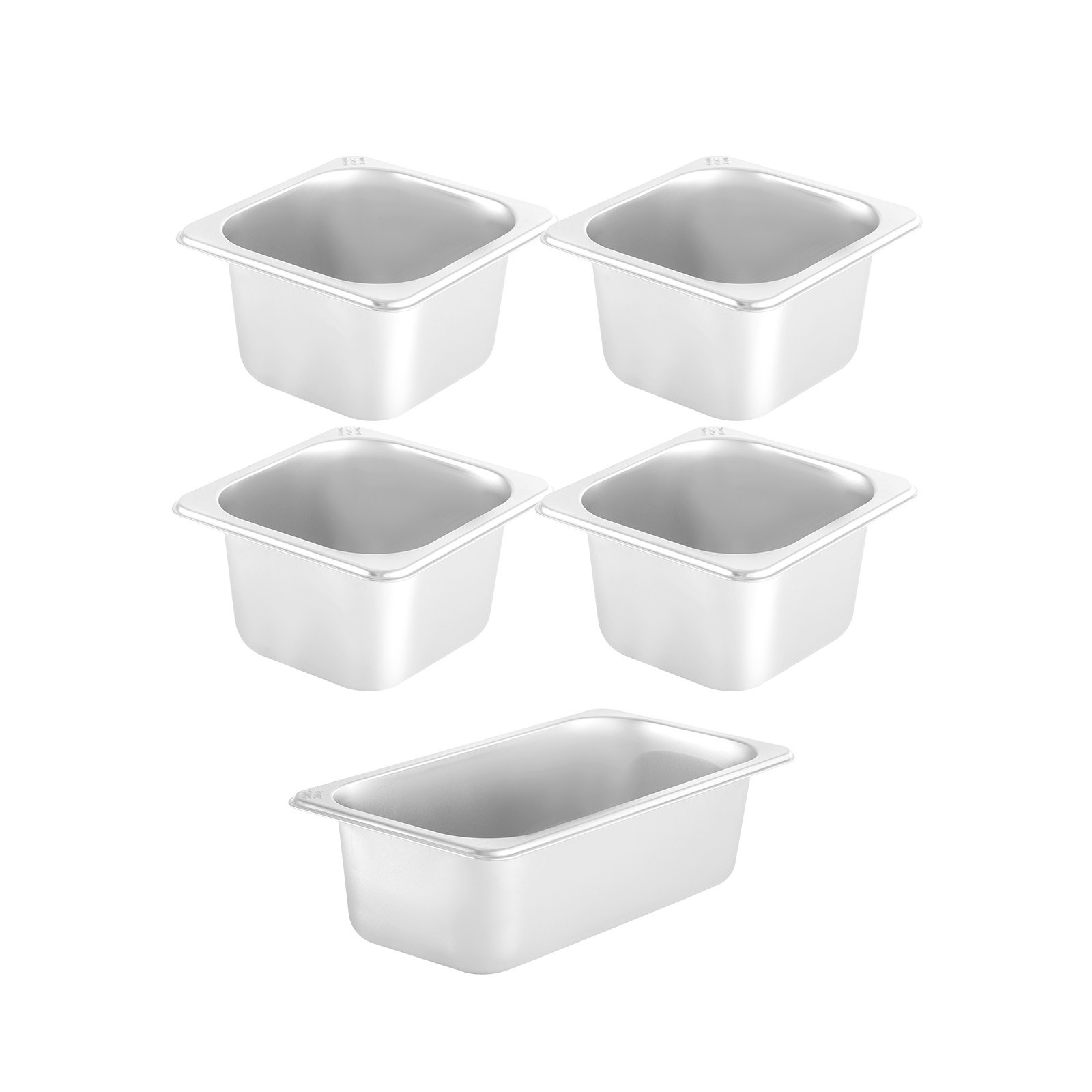 Pan Quantity: 1 x 1/3 Pan + 4 x 1/6 Pans,Refrigerant: R290 / 16 g,Material: 304 Stainless Steel,Pan Depth: 4 in / 10 cm,Product Dimensions: 39.4x15.6x8.8 in / 100x39.5x22.5 cm,1/6 Pan Capacity: 1.2 Qt / 1.3 L,Foam Material: Cyclopentane,Total Pan Capacity: 7.8 Qt / 8.5 L,1/3 Pan Capacity: 3 Qt / 3.3 L,Voltage: 110 V / 60 Hz,Model: VRX1000/380LID,Product Weight: 44 lbs / 20 kg,Temperature Range: 35.6-46.4℉ / 2-8℃,Power: 150 W